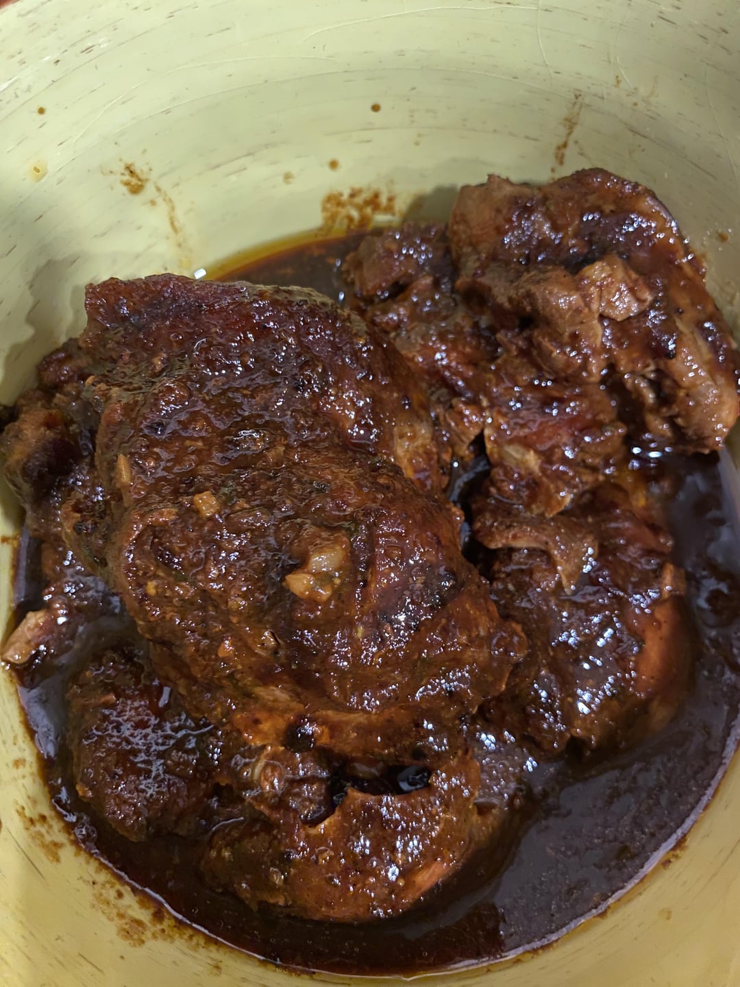 1. Sear the thighs quickly on a skillet or pan before you put them in the crockpot. Trust me. 2. I only had boneless skinless thighs in the fridge but if you’re looking for extra taste, get bone-in. 3. Instead of ketchup, add a mix of ketchup, bbq sauce, and a dash of Worcestershire sauce. 4. Instead of just dried basil, I used a mix of Italian seasoning, white pepper, black pepper, and harissa powder (for an extra kick). 5. Added a bit of ginger + garlic.