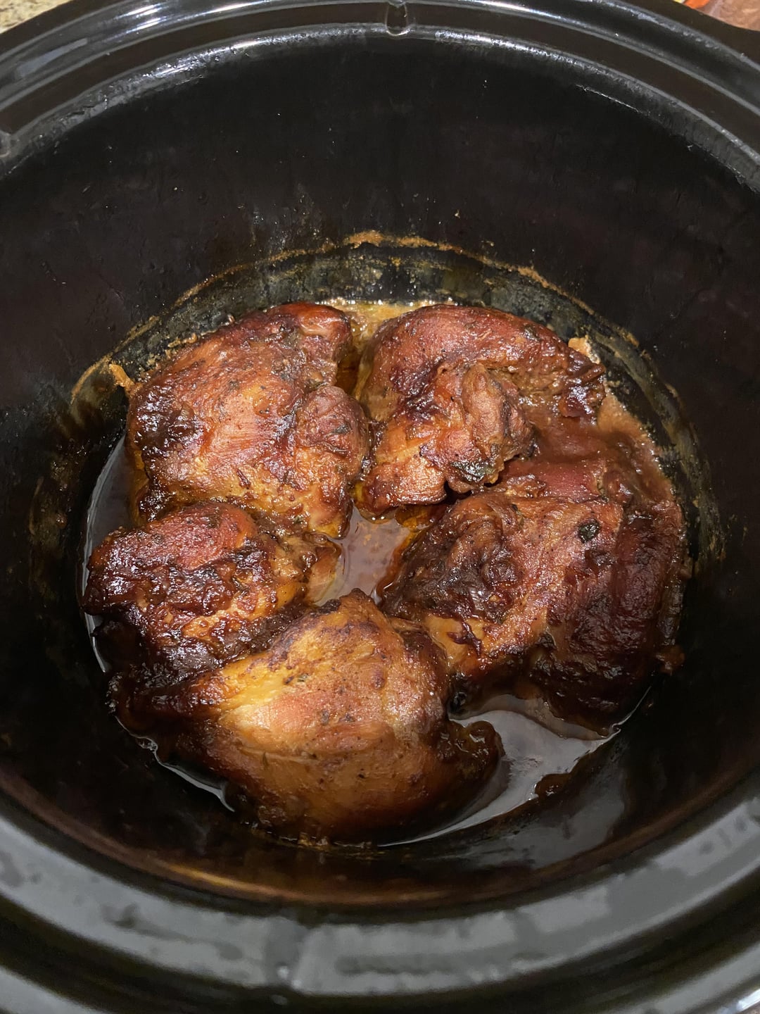 Recipe source: https://www.allrecipes.com/recipe/236609/honey-garlic-slow-cooker-chicken-thighs/