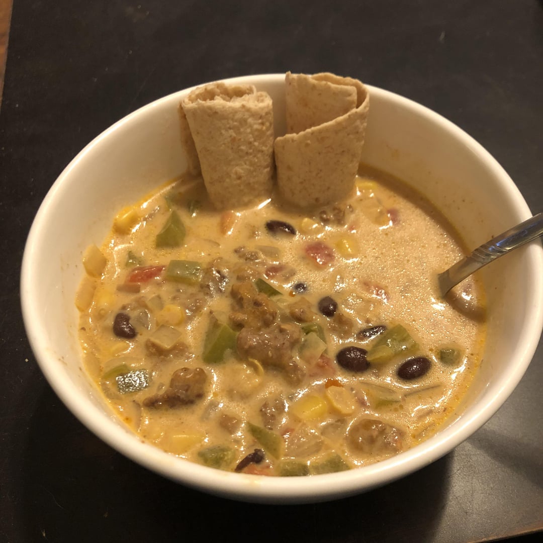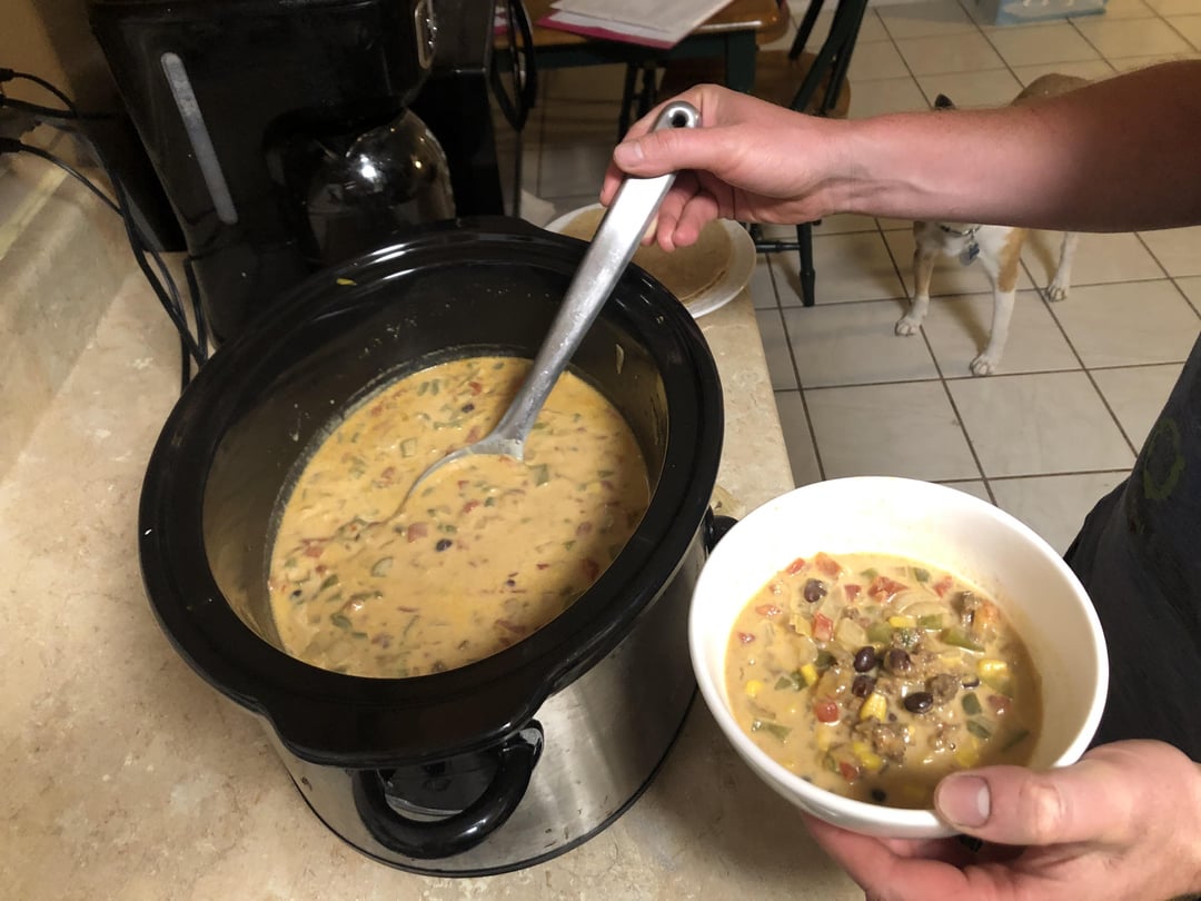 TeacherInRecovery 3 years ago RECIPE: https://www.bakedbyrachel.com/slow-cooker-nacho-soup/This is a favorite for my fiancé and me. I think this is the fifth time we’ve made it! It’s warm and cheesy and filling. We generally get 6 bowls out of it.