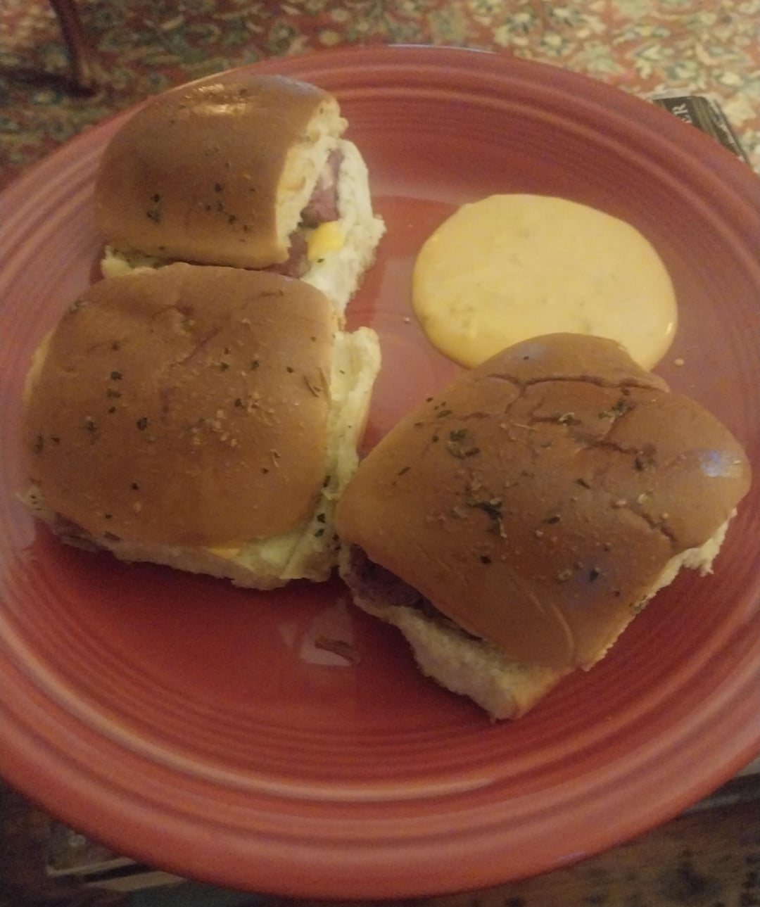 Some cabbage, or sauerkraut, and you’ve got yourself some Reuben sliders though! Yum!