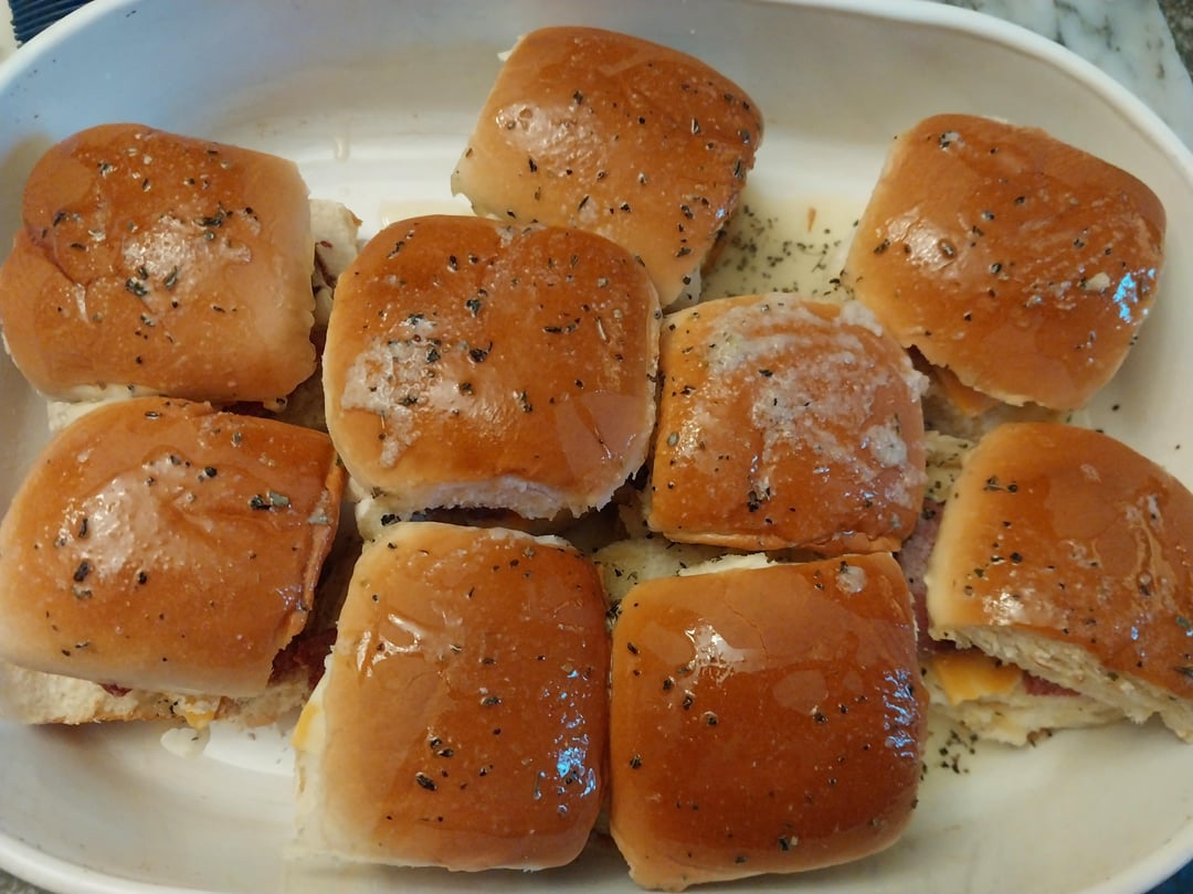 Sph3al 3 years ago It looks like the Hawaiian roles have something glazed on them? What is it?Some cabbage, or sauerkraut, and you’ve got yourself some Reuben sliders though! Yum!