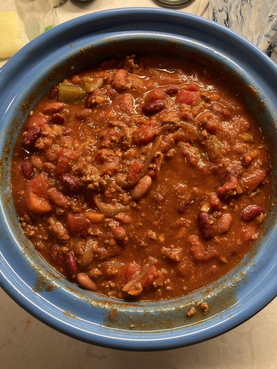 Crockpot Chili – tomatoes, ground beef and kidney bean version