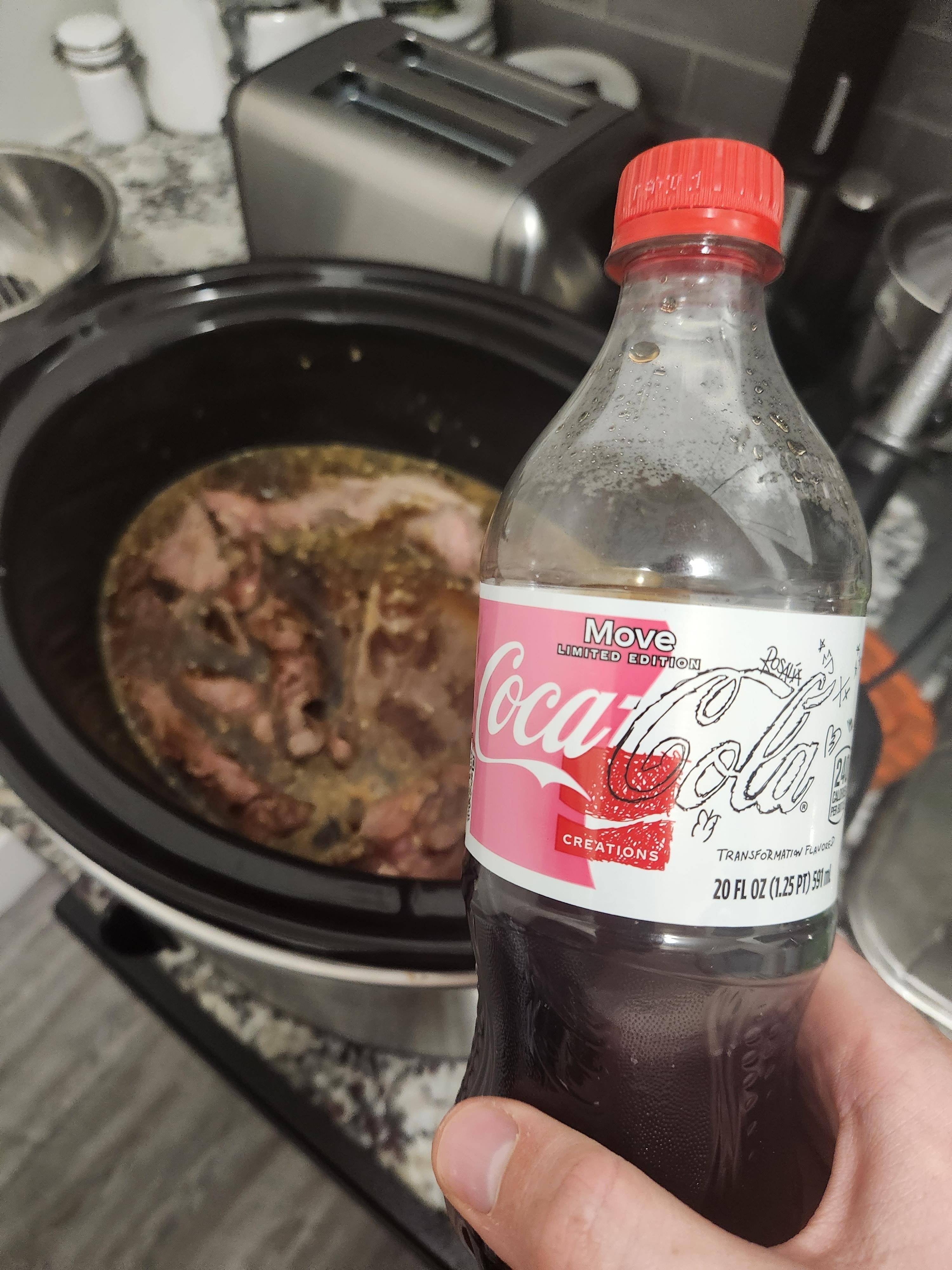 Welp, thought I was using regular coke and now my French dip chuck roast is marinating in “transformation” flavored coke