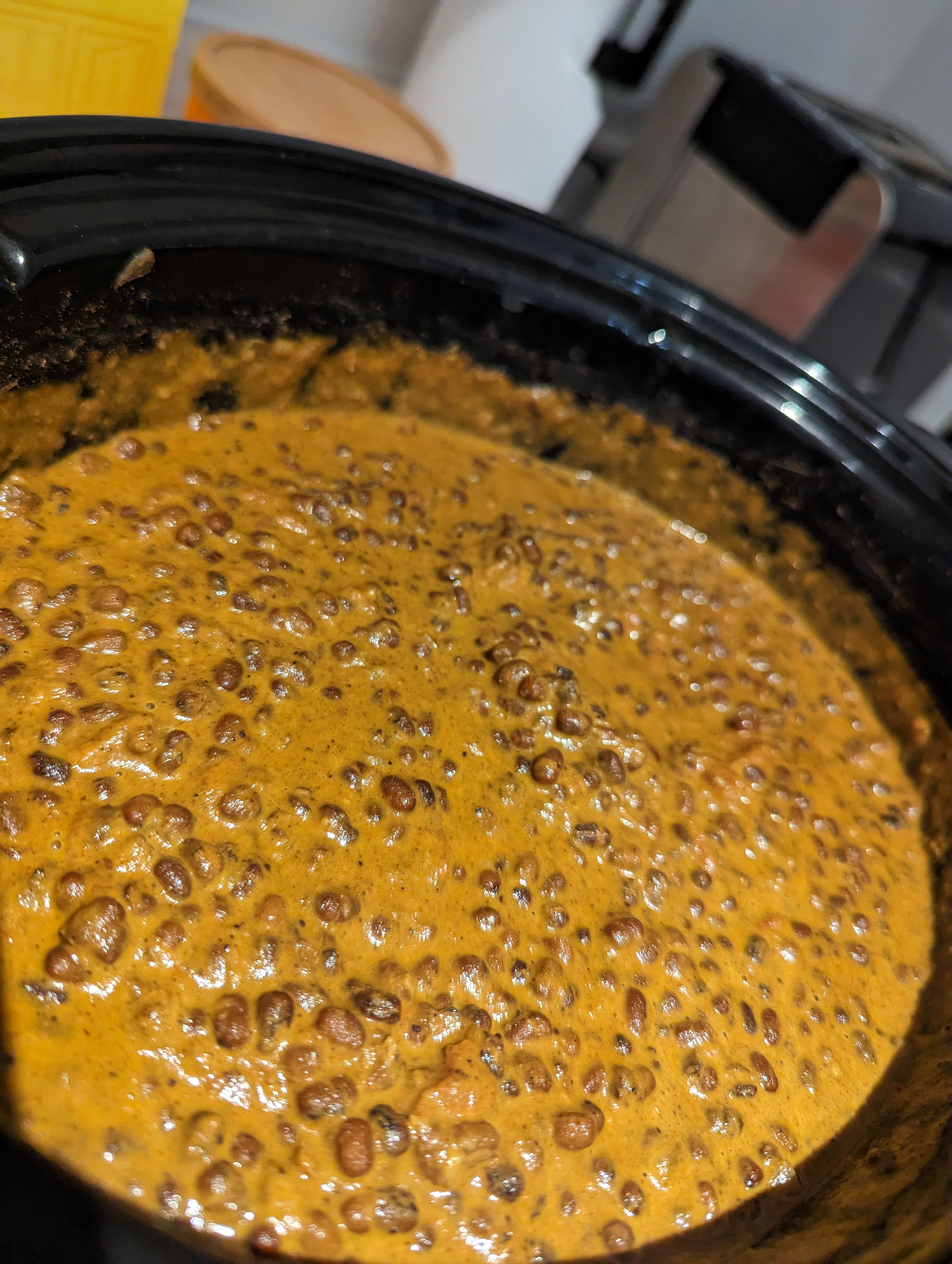 9. When dal is cooked, transfer to the slow cooker. Add the cooked spice paste/onions.
