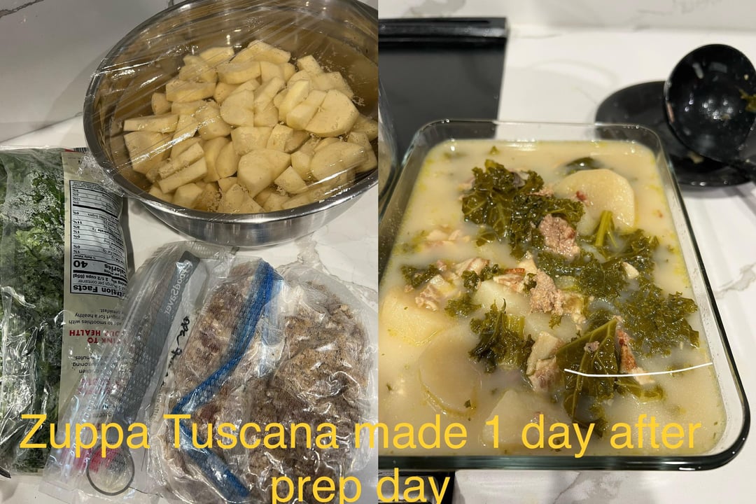 5: Zuppa Tuscana. Prep: Prepped potatoes, cooked bacon and onions, cooked sausage.