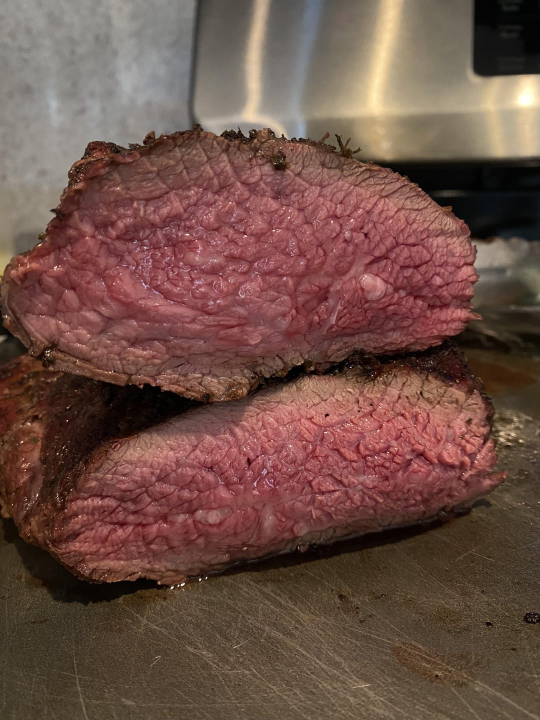 Pulled it off. Rested for 10 minutes. Sliced against the grain and it was perfect.