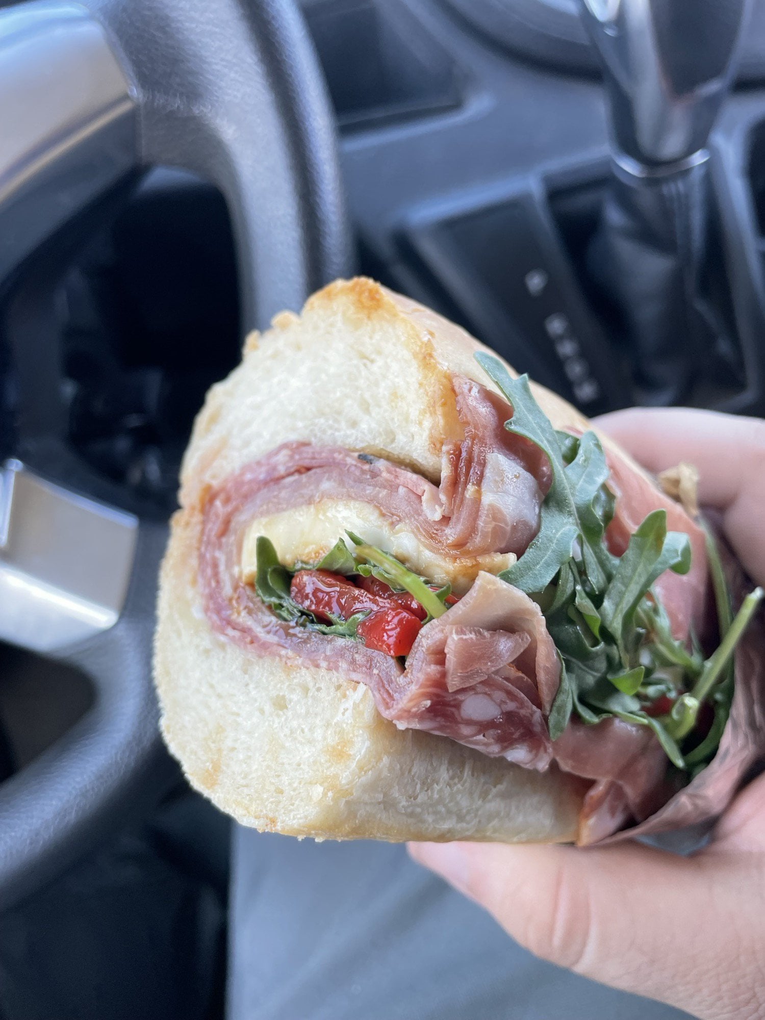 Turbulent_Bunch3464 3 years ago Capocollo, Prosciutto, Soppressata, Mortadella, Fresh Mozzarella (cut thick), arugula, fire roasted red peppers, olive oil blend, and balsamic glaze, all on a homemade sub roll.
