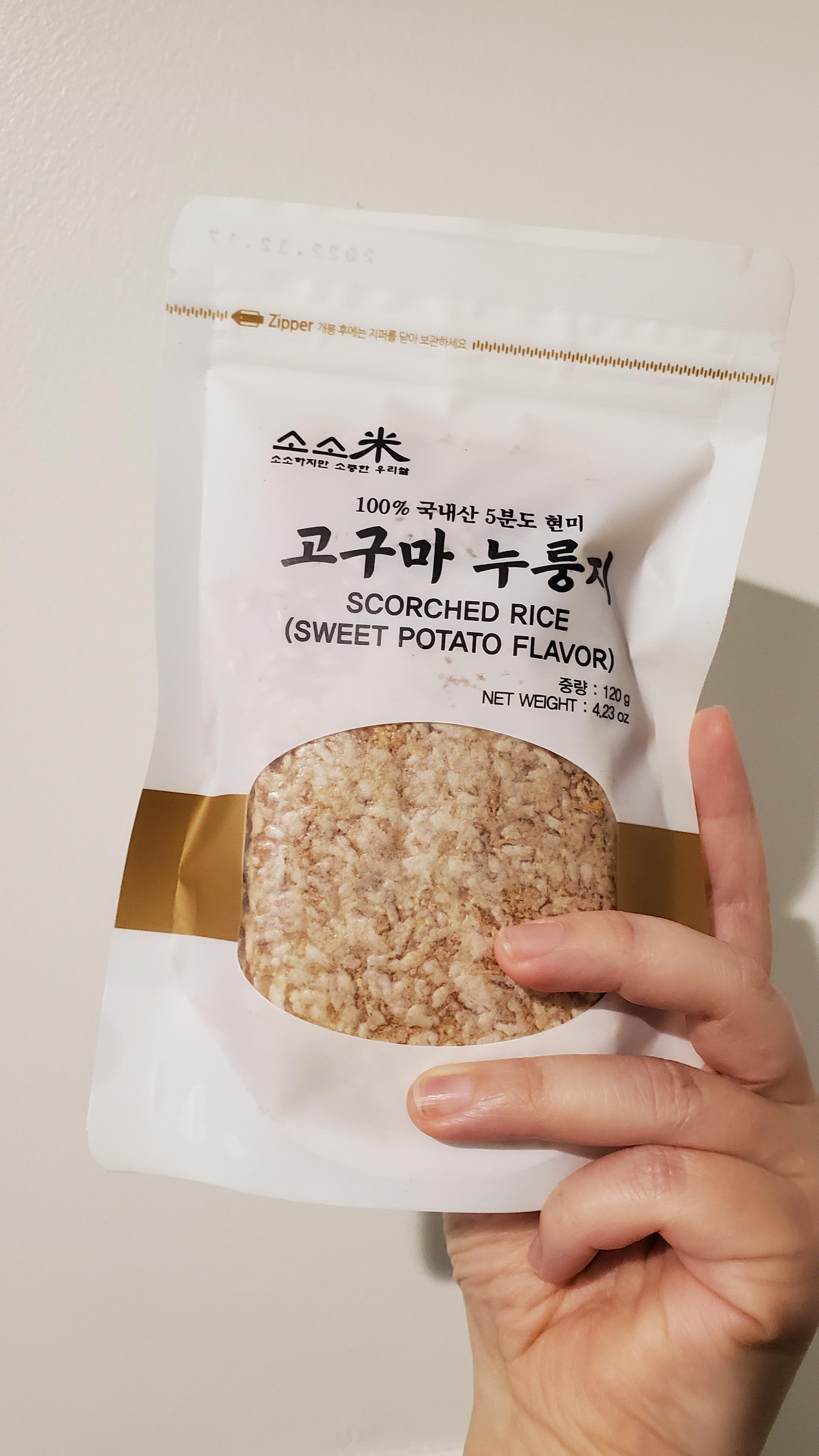I wouldn’t put this in the soup since it’s a stronger tasting soup and I see this as kind of a specialty 누룽지 with the sweet potato. I prefer to toast the store bought 누룽지 on a skillet. If you have those days where cooking rice is too much there’s cooked rice in containers that you can put in microwaves. If you’re comfortable with reheating plastic wrap freezing home cooked rice and reheating in the microwave works too when you’re in a pinch.