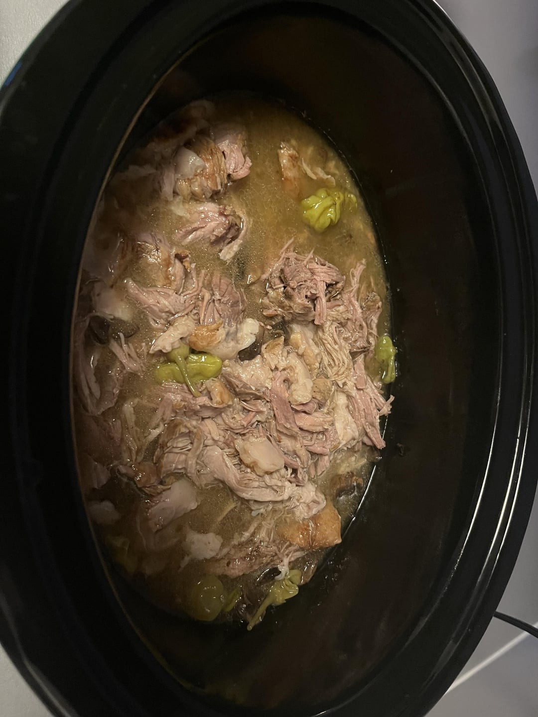 I made…Mississippi Pulled Pork? by AlwaysSavvy 1 Comment AlwaysSavvy 3 years ago Receipt: https://www.saltandlavender.com/wprm_print/40588I modified the recipe to use 4 lbs of boneless pork shoulder instead of the beef. I also put a lot of mushrooms in, only used a 1/2 stick of butter, and only used a fraction of the ranch/aus jus packets. Came out amazingly.Write A CommentYou must be logged in to post a comment.