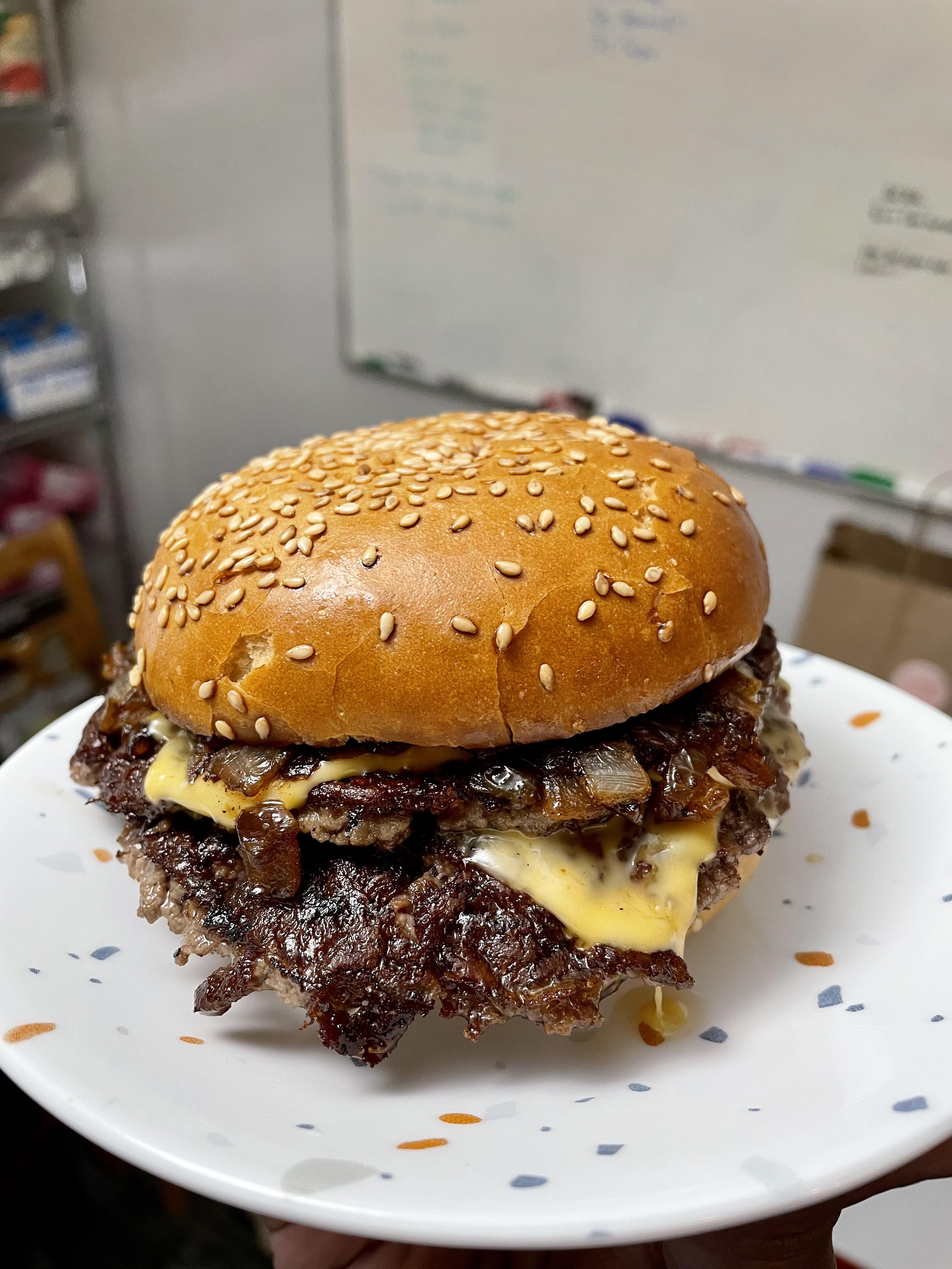 Made a quick burg for lunch. Double meat, double cheese, topped caramelized onion.by Raisin-legs Write A CommentYou must be logged in to post a comment.