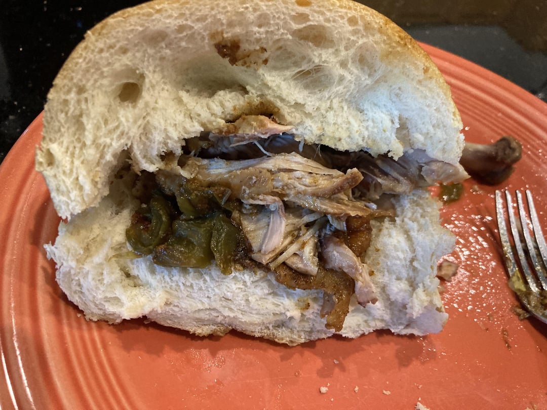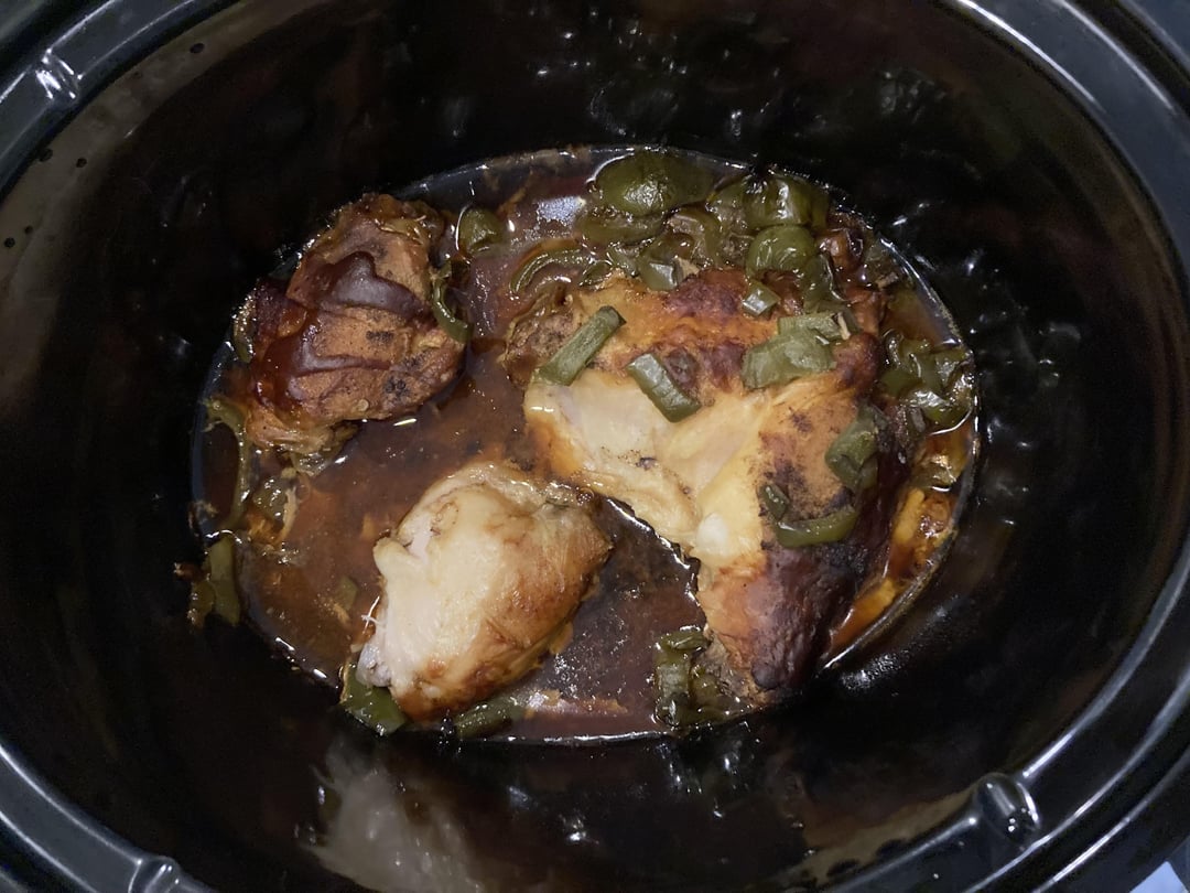 My go-to: chicken thighs (w/ BBQ sauce) and bell peppers with store bought crusty bread by TheUplifted1 Write A CommentYou must be logged in to post a comment.