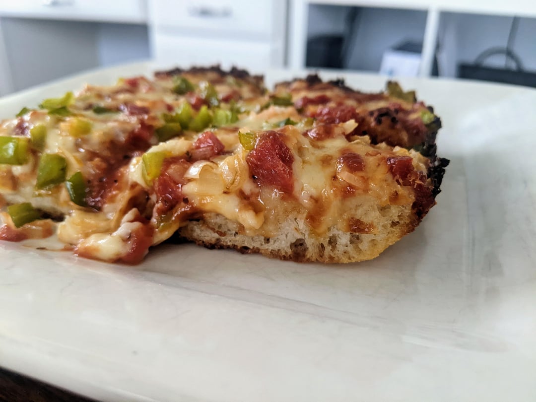 73% hydration (serious eats recipe). Small dice pepperoni, onion and green pepperby BakedMitten 1 Comment Pizzahoarder16 3 years ago That looks phenomenal!! Need in my belly! Love Detroit styleWrite A CommentYou must be logged in to post a comment.