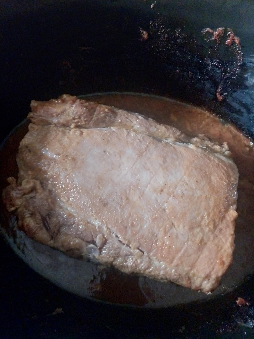 I prefer to smoke it so I’ll do fat side down in the smoker. In a crock pot I guess it wouldn’t matter as much but I’d probably still go fat down.