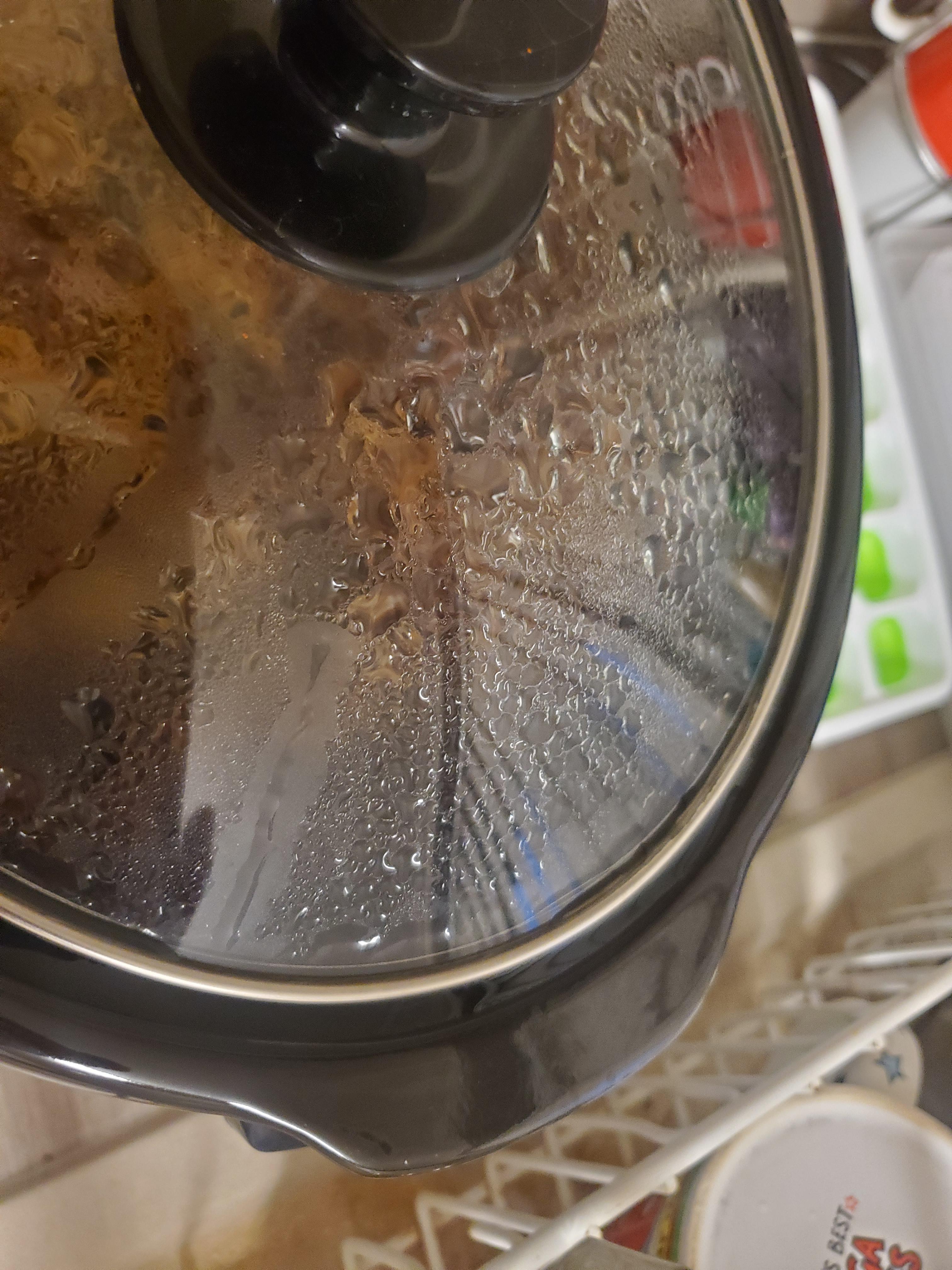Bit hard to see from the picture but whenever I use my slow cooker, water always pools up over the lid and ends up leaking all down the sides if I don’t regularly soak it up first. This is on all temperatures and from half to almost full.