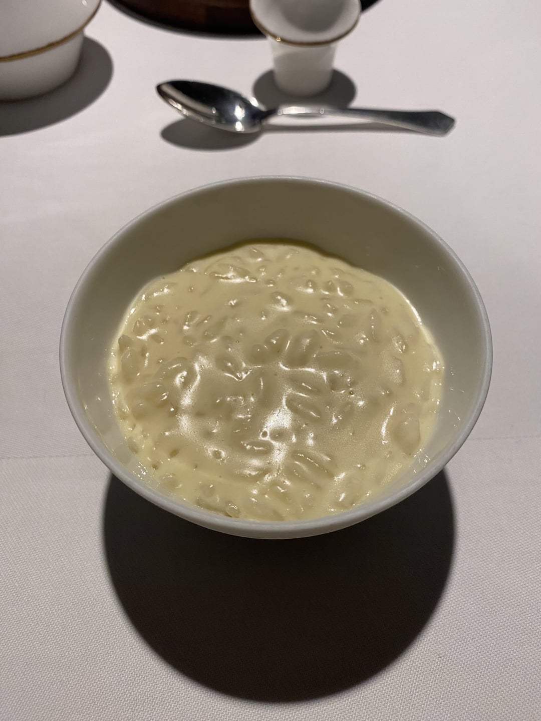 11. Sake (2): The sake dish came back. The waiter dropped the dish without saying much. At first, we thought it was a mistake. However, we were reassured that this was indeed our next course. What looked like risotto was actually white chocolate cream and sake lease. The sake sequence was my favorite of the night.