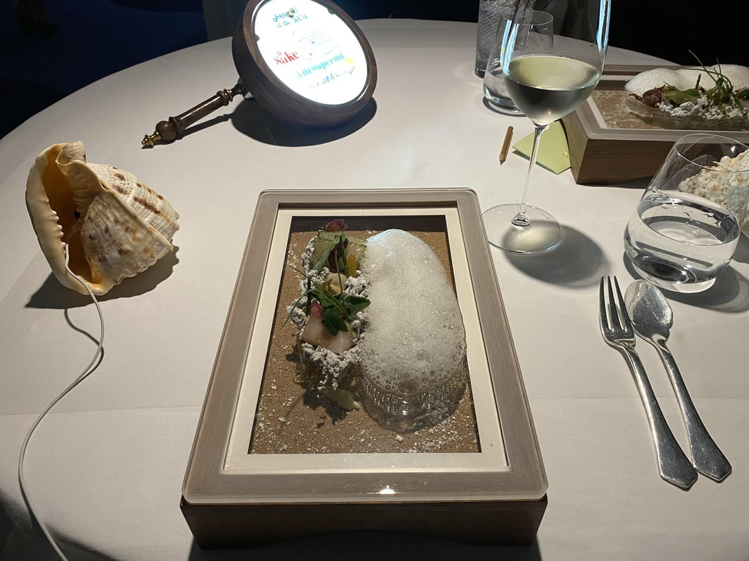 4. Sake: Sake, crab royale, cuttlefish and salami cream. A risotto cooked in sake and parmesan with bites of crab and squid. One of our favorites of the night.