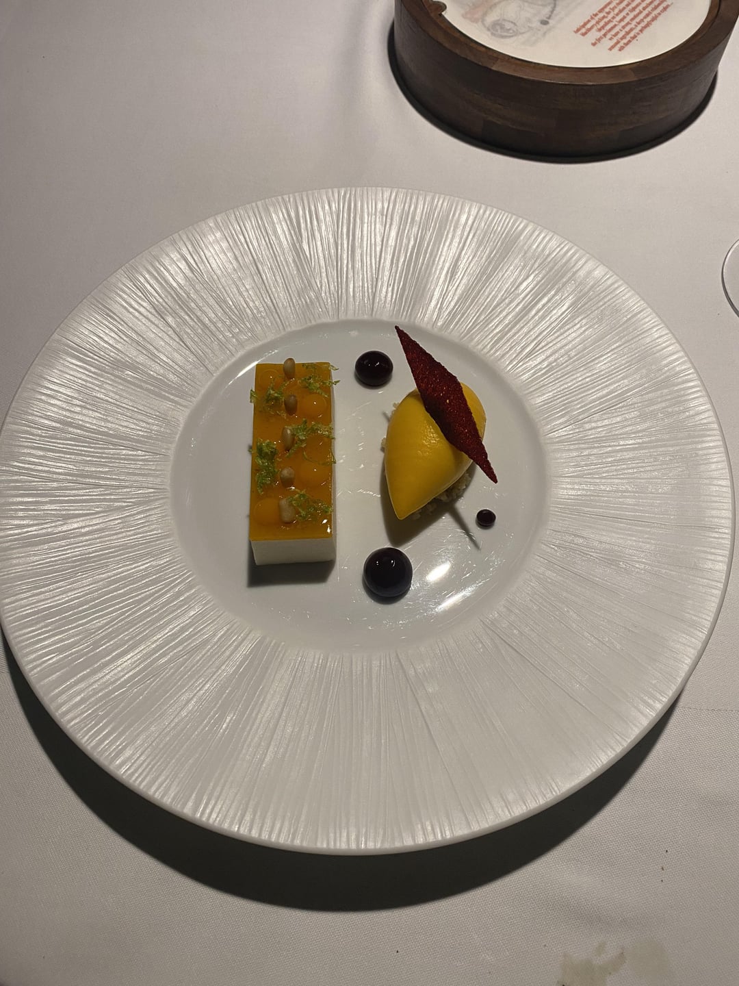 12. Alphonso Mango: Lychee, beetroot, green pepper. Frankly, this went over my head a bit. I was expecting a very mango forward dish. Not sure the green pepper worked.