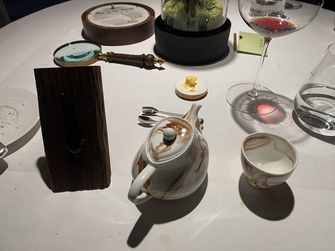 8. Walk in the Woods: the next course came in two sequences. The first was the “forest floor” beet and blackberry, truffle, oakmoss. Second sequence was the venison broth, which we were told to pick out the tree “sap” and put in the tea pot to make the broth.