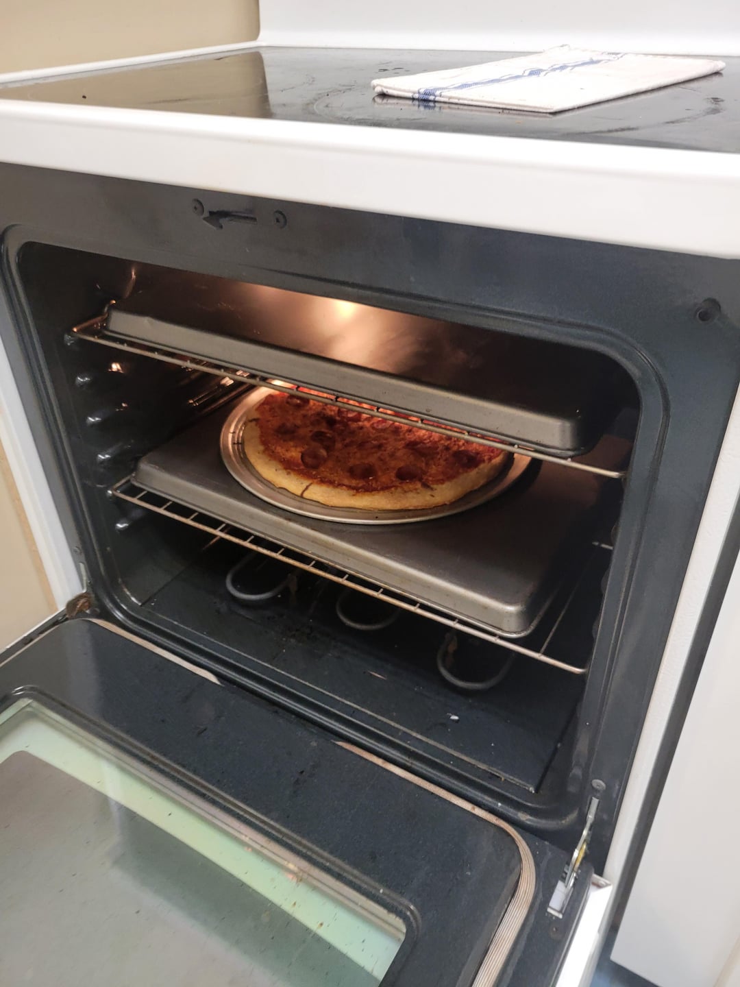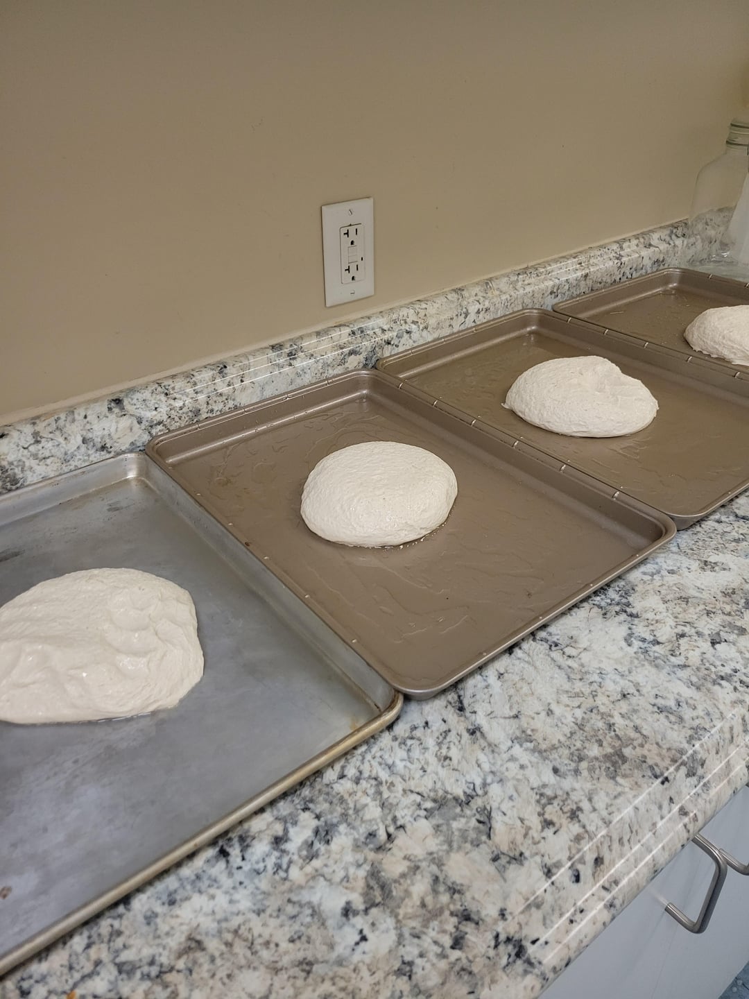 I had a very humble home oven to cook them in, using 2 sheet pans as baking steels. The pies were cooked 2 at a time, 545 degrees for around 14 mins and a 1 minute broil.