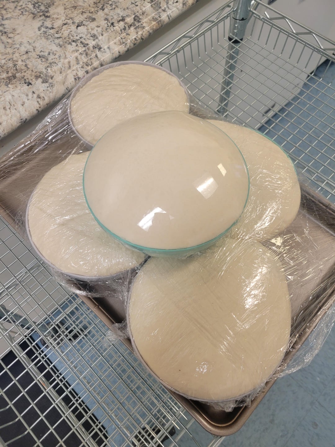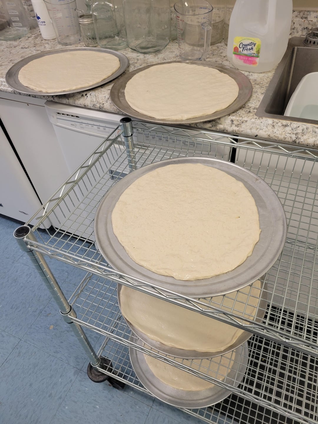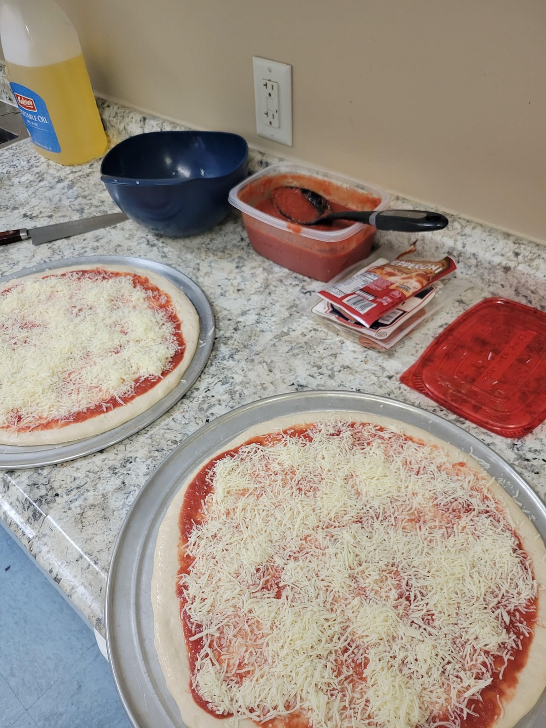 We typically do dominos on pizza Friday, but today I got to take the wheel. I make alot of pizza at home, but at 5.5lbs of dough, this is by far my largest batch. My only wish is to have had better cheese to use! But we had preshredded “pizza cheese” in the freezer.