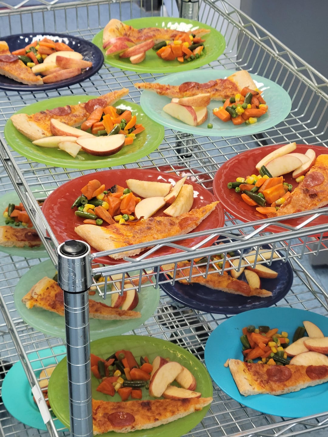 My son would eat the veggies and apples before the pizza. I don’t get it. But that looks like a tasty and balanced meal for ankle biters.