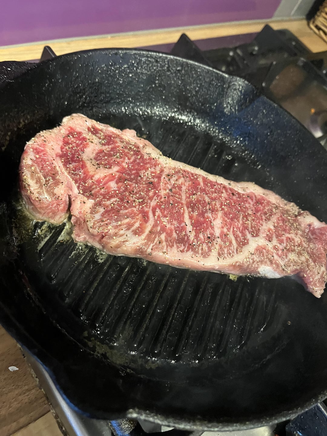 So I bought a grade 4 Australian pure bread (allegedly) sirloin steak in a decent London butchers. It’s around 9oz I paid around £50 for it.