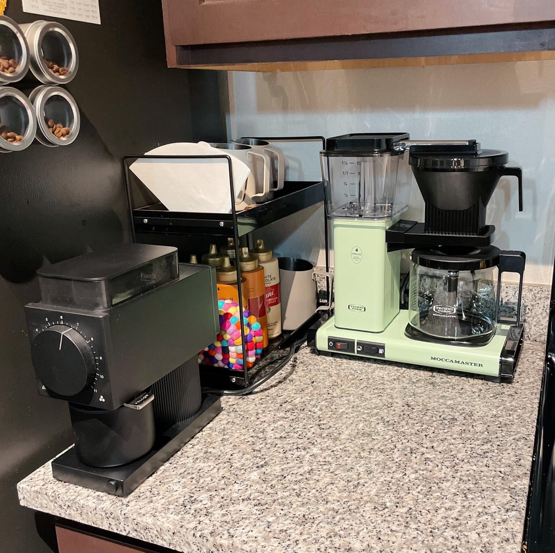 Apartment living means sacrificing space… except when it comes to coffee 🤪 Not pictured- Fellow Stagg in Smoke Green (can you tell my favorite color is sage green? Lmao)