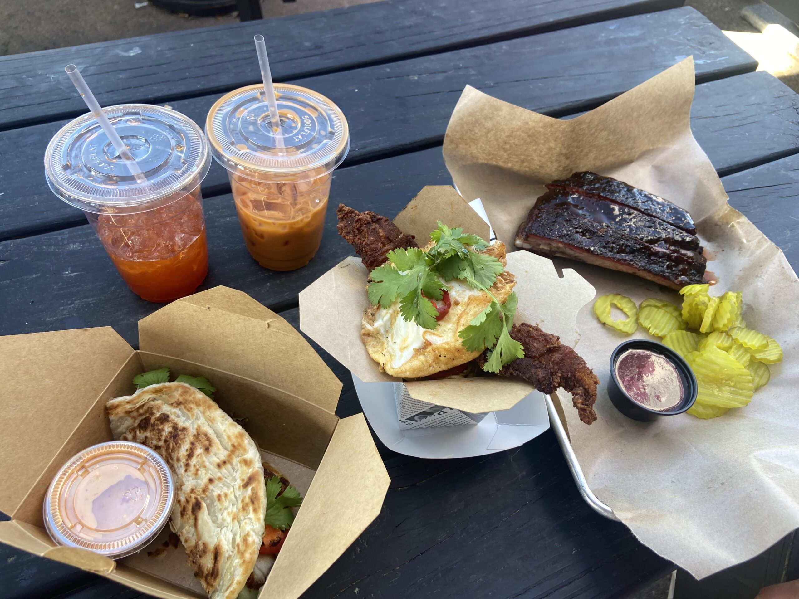 After seeing Kiin Di featured on the Best Ever Food Review show especially as a spicy food fanatic, I had to try it. Got the Killer Noodles, Thai Me Down Roti, Thai Tea and the kind owners threw in a free Thai lemonade. EVERYTHING WAS AMAZING! Even snagged half stack ribs from Brown’s next door. 🔥