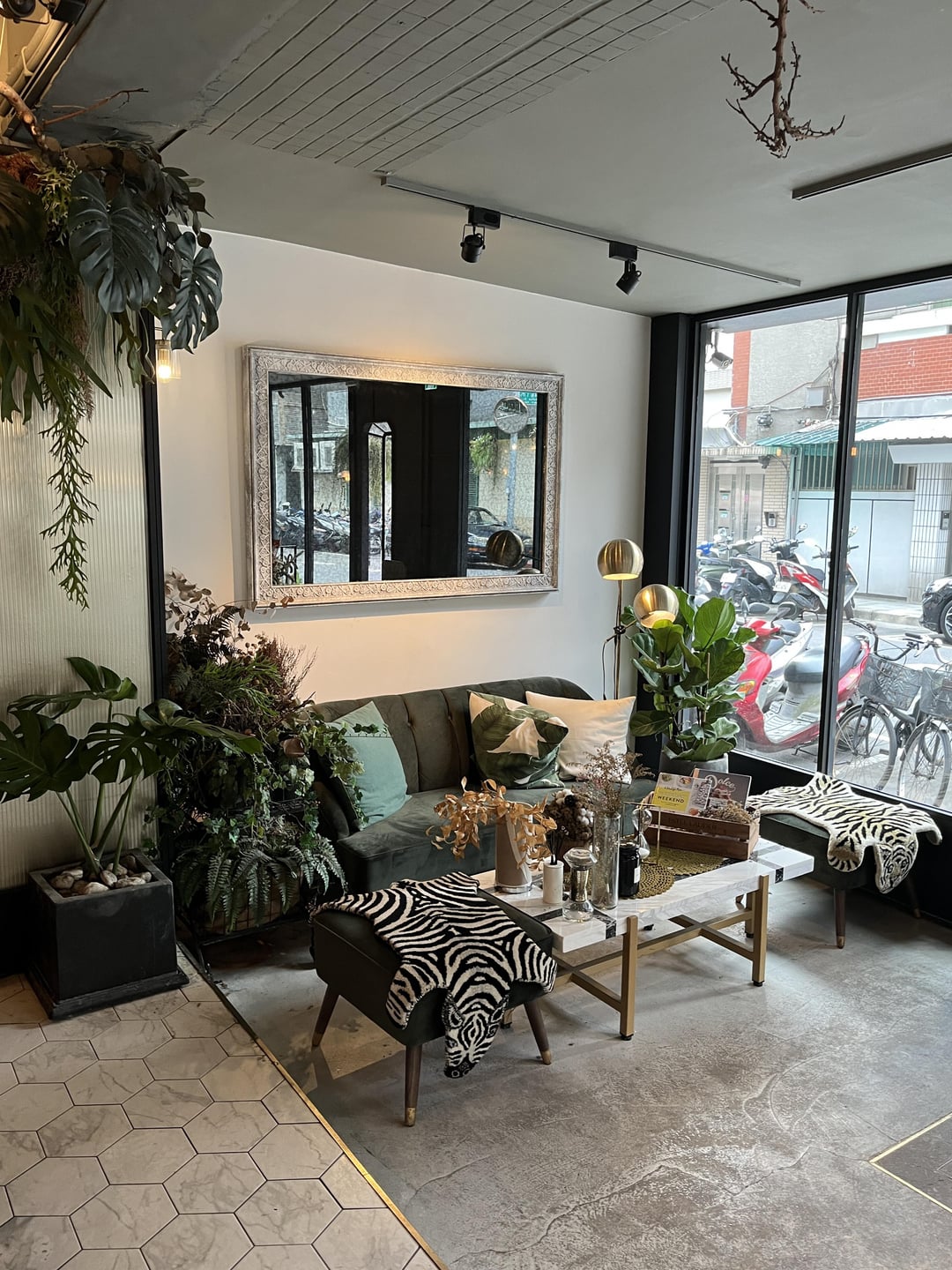 Very unique, eclectic decor! I could sit on that couch sipping coffee and looking out the window all day, it looks like a very relaxing place.