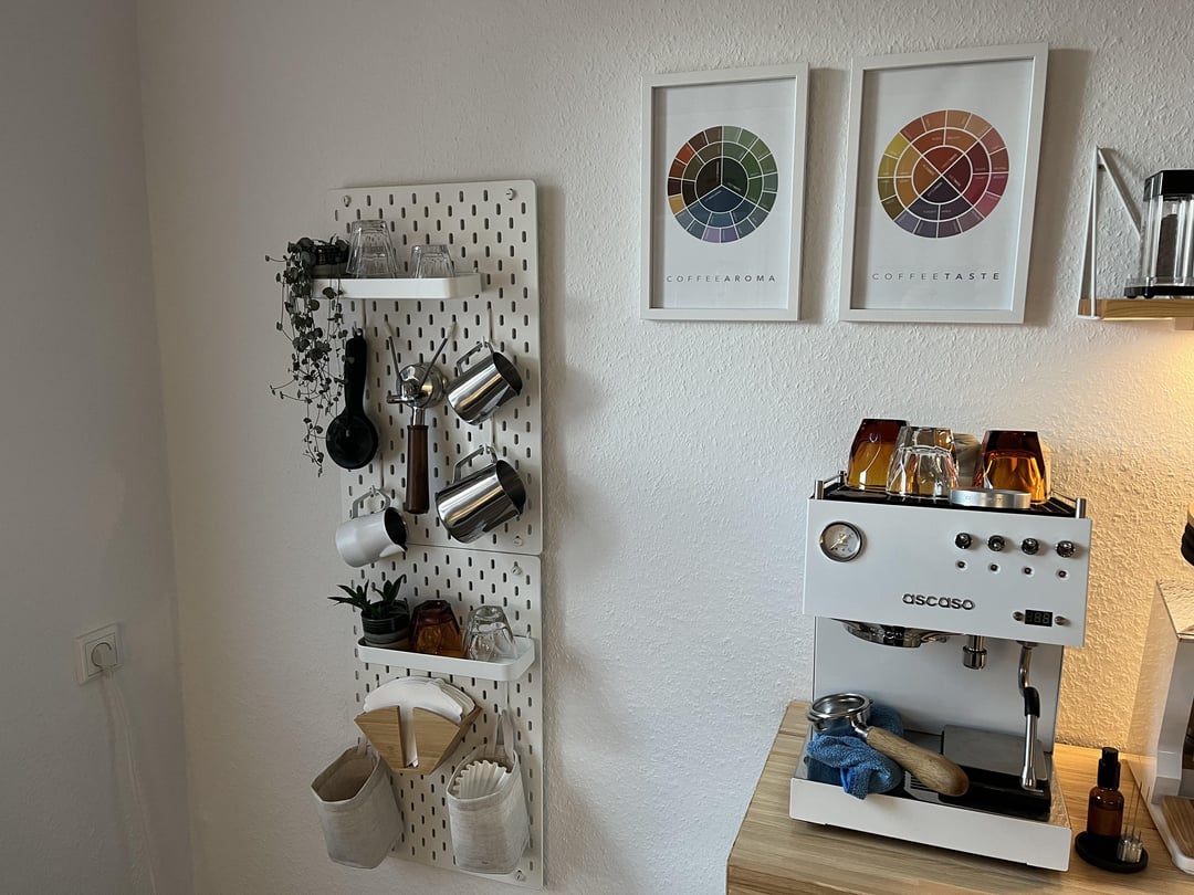 Nice! I have the smoke cortado glasses and the black latte with match saucers and love them! Setup looks great!