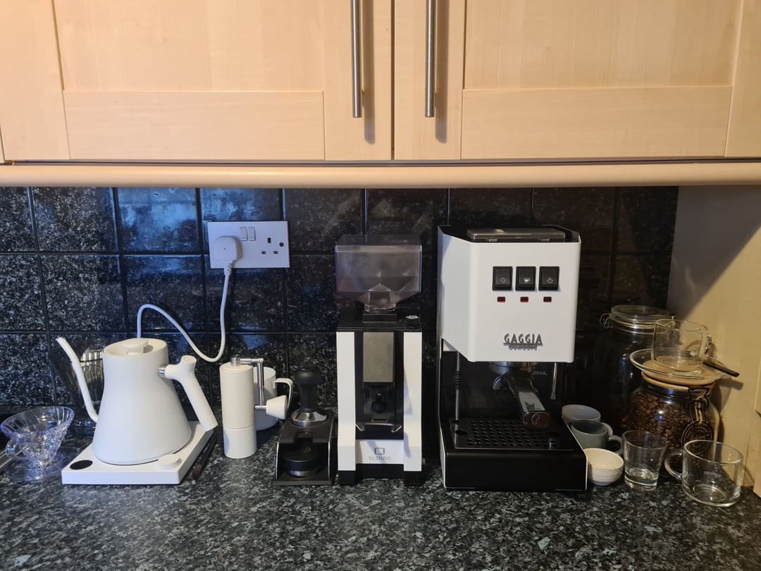 Upgraded the setupby 22vegan22 3 Comments RepublicAggressive92 3 years ago I like the white theme, well done! [deleted] 3 years ago [deleted] 22vegan22 3 years ago Item list from left to right: – Fellow Stagg EKG – Timemore Chestnut C3 Pro hand grinder – Eureka Mignon Silenzio – Gaggia Classic ProWrite A CommentYou must be logged in to post a comment.