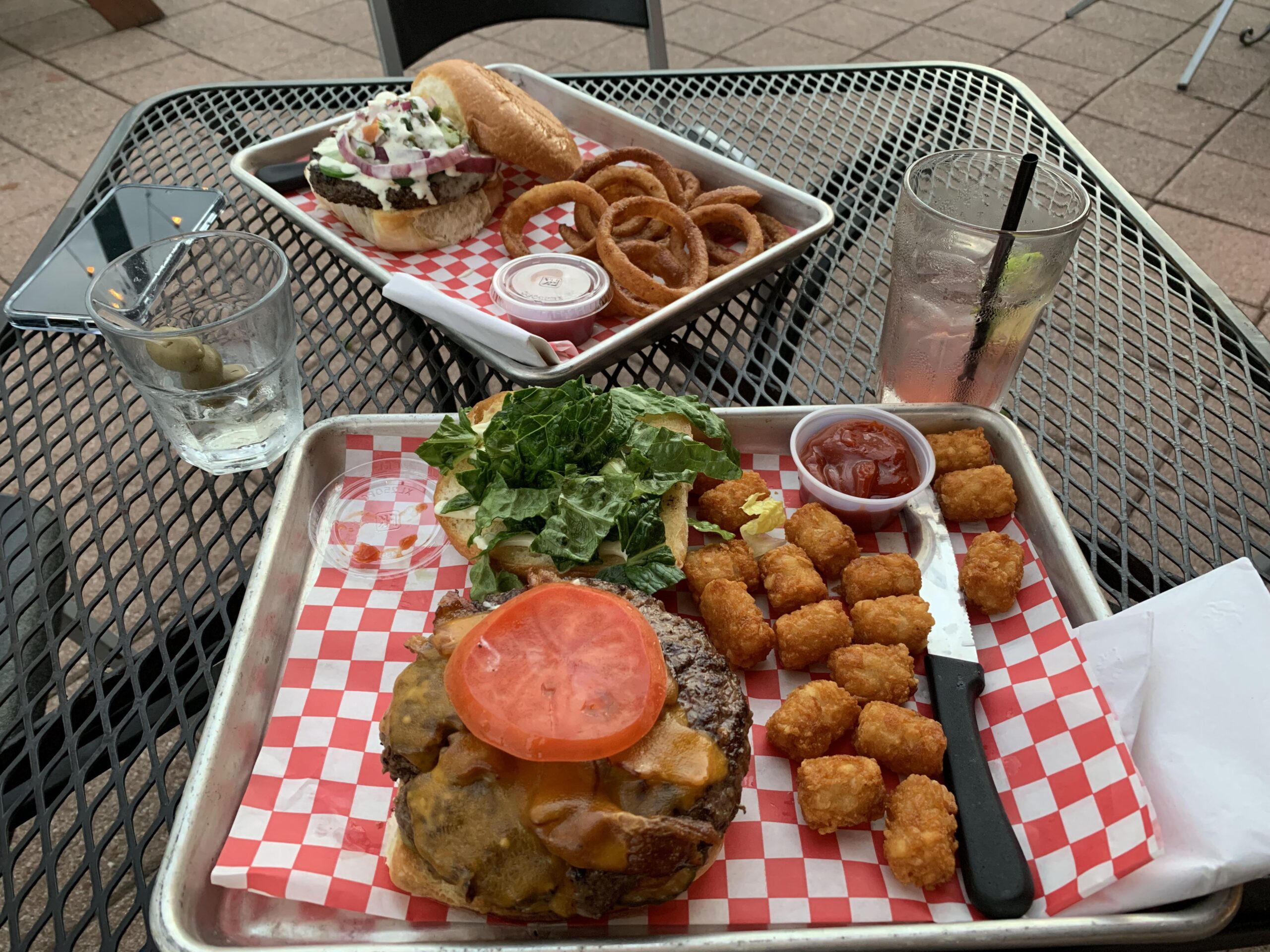 Hidden gem of a burger place. It’s a bar, so adults only. Heavy pours on the drinks too. I got the hideout burger, no onions, add cheese and bacon. He got the mean green. If you’re looking for a tasty grease-burger, this is the place.