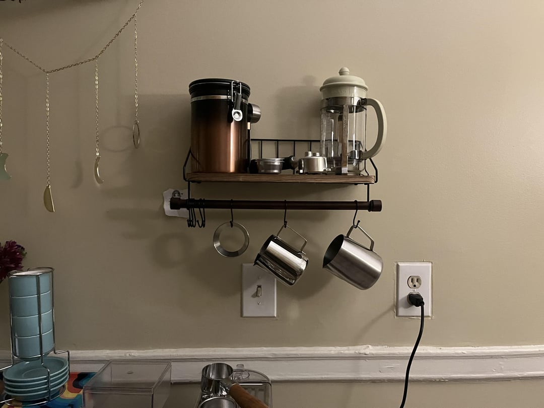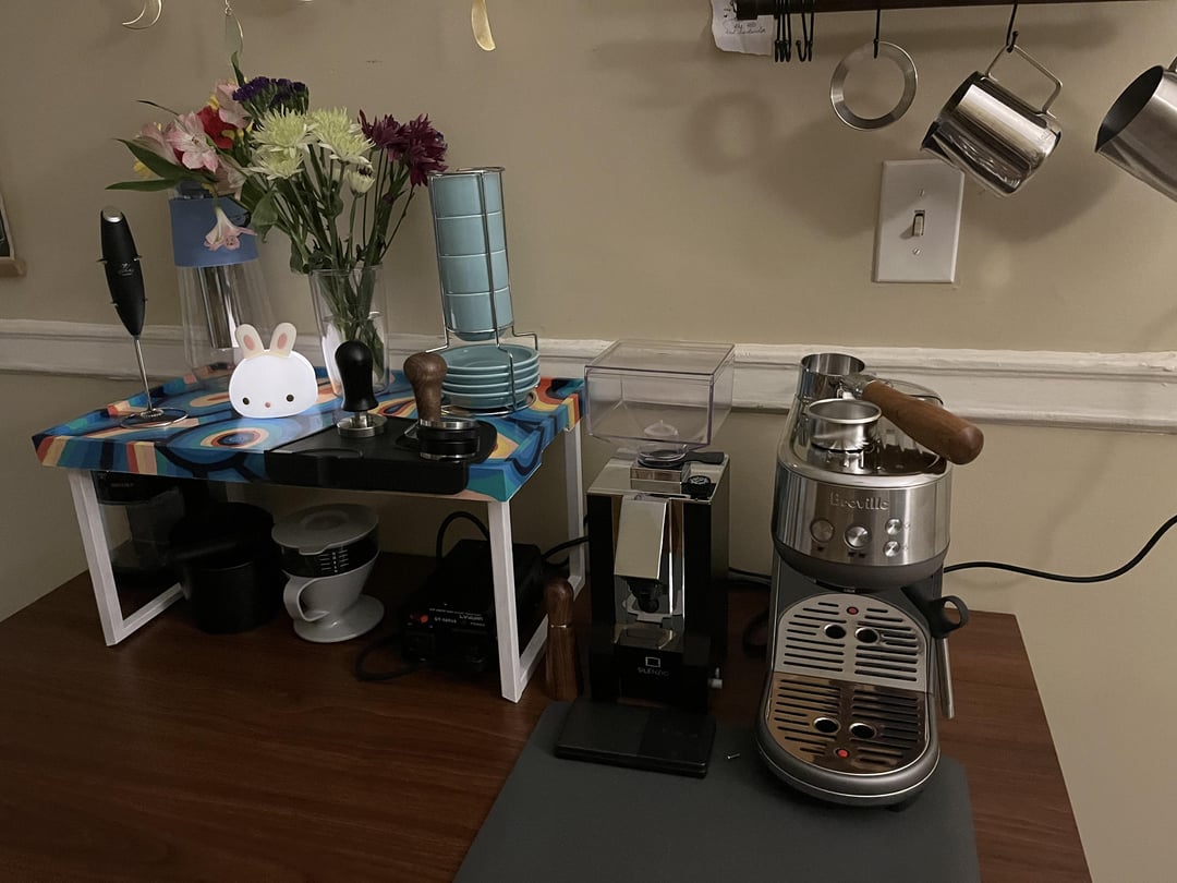 I just got my first set up! It isn’t perfect, bc I live in a crappy college apartment, but it’s the best I got! I painted the little rainbow table 🙂by caspersmindpalace 5 Comments caspersmindpalace 3 years ago Any tips? I don’t have much room, but I still want it to look cuter. It’s what I got so far! dunwall_scoundrel 3 years ago Looks great! Say, where’d you get your portafilter? The grain on that handle looks nice. mtbizzle 3 years ago If I wasn’t totally insane when it comes to coffee, id go for something like this! Tb_bunni03 3 years ago Oh nice! I had that same rabbit light (my 4 year old niece has since taken it as her own🥲) No_Concert_2287 3 years ago But you’ve made a noble and auspicious start! Congratulations.Write A CommentYou must be logged in to post a comment.