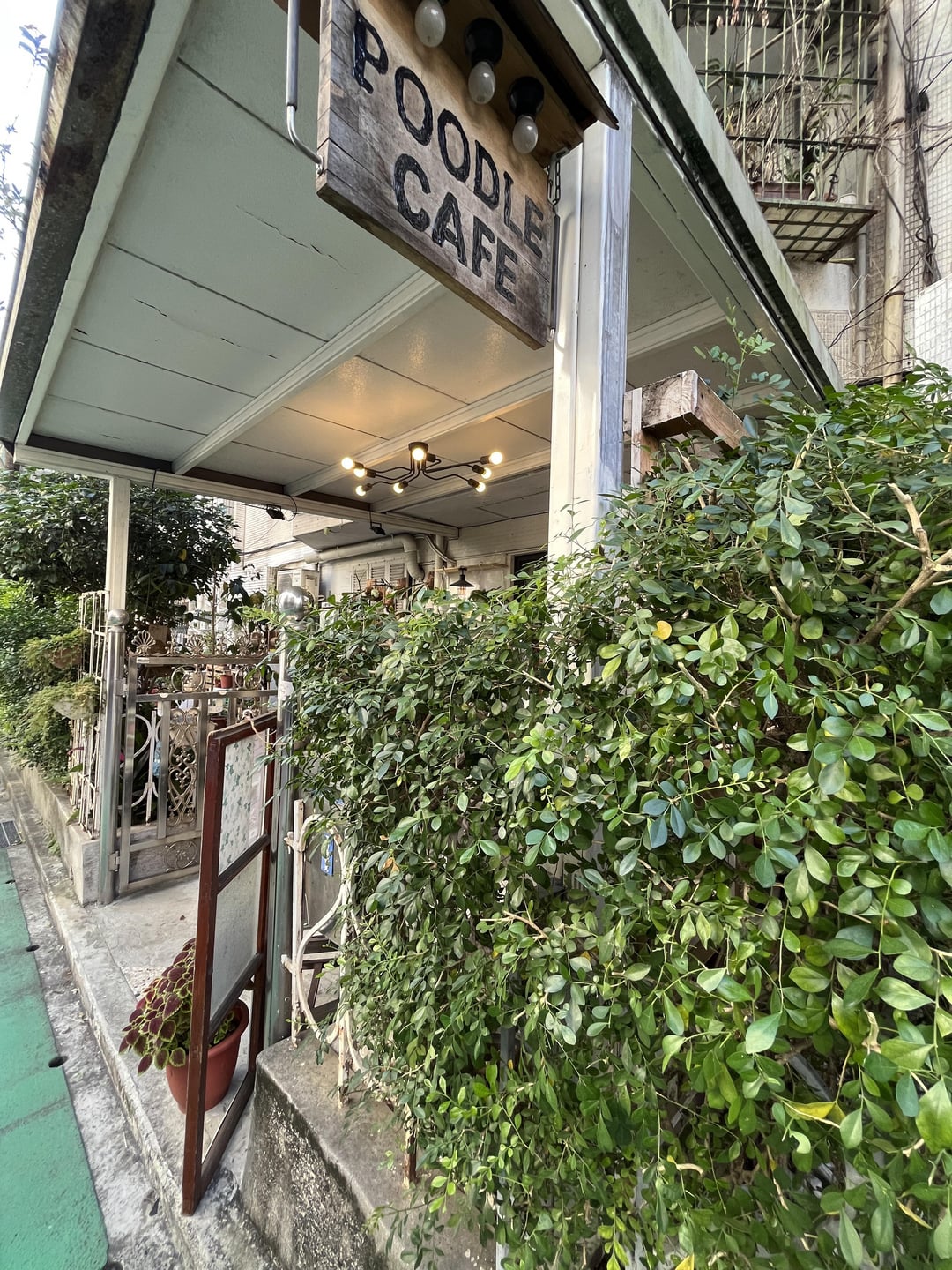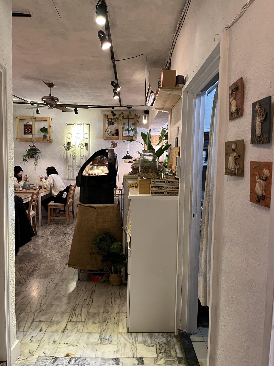Perhaps some more inside plants and string lights would help it to look less like my grandma’s dining room. I think also the pictures you posted made it look really small and cramped so it is hard to say much about the layout besides that it looks exactly like my grandparents house and not a coffee shop lol. The outside looks like the entrance to a really eclectic coffee shop though.