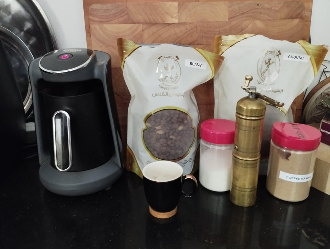 danielrosehill 3 years ago Automatic Turkish coffee brewer: Arzum Okka MinnioHand grinder: SozenCoffee: Izhiman’s, Jerusalem