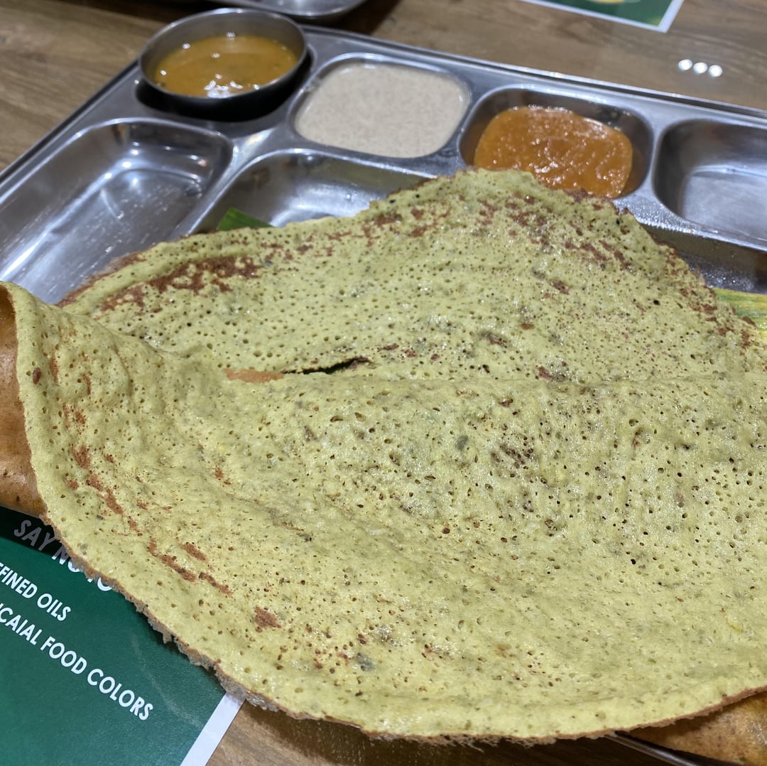 Pesarrutu a savoury crepe made of green beans and lentils, Singapore