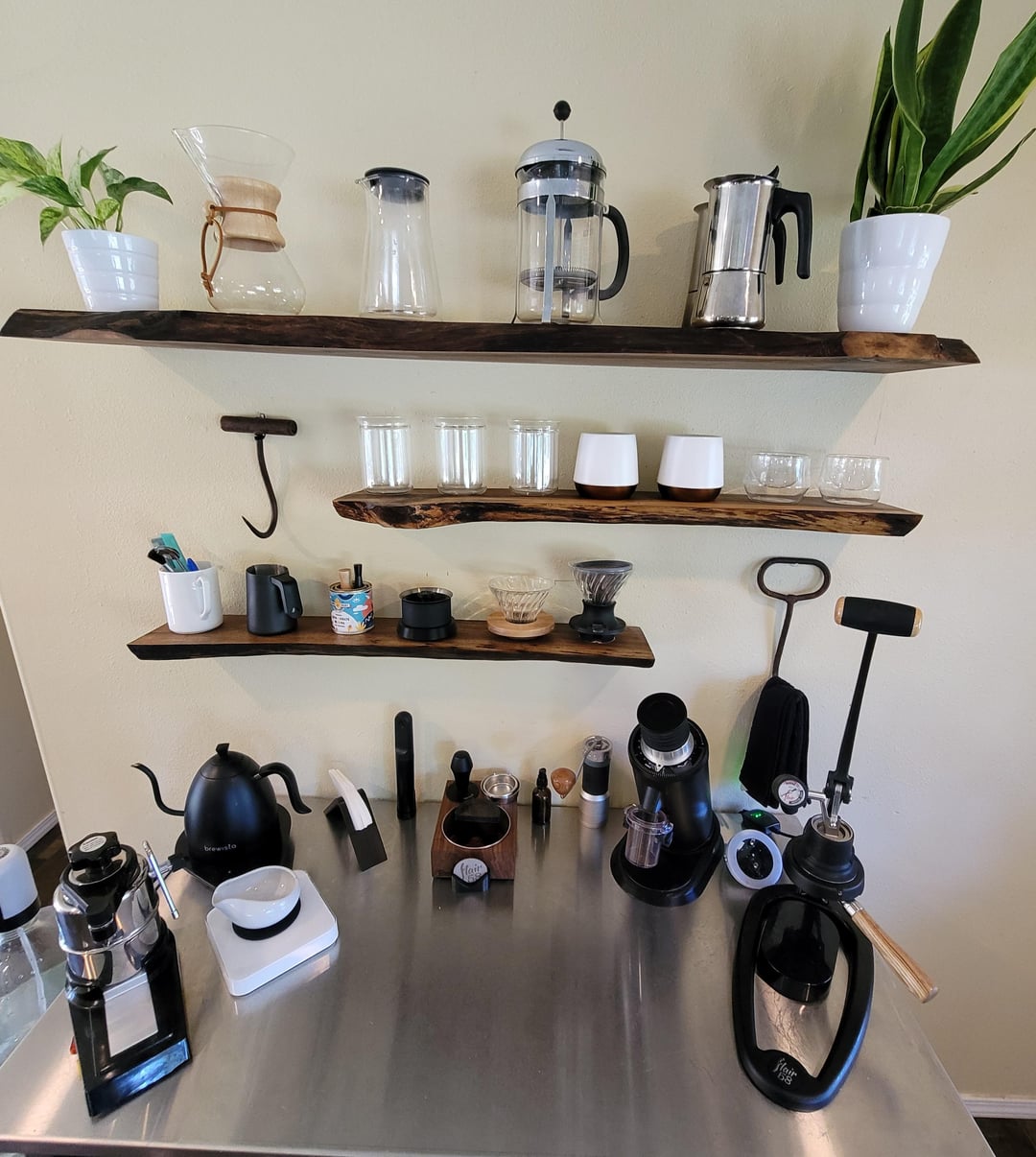 Brewista kettle, Acaia Pearl S, Flair 58, DF64 with SSP MP, 1ZPRESSO K Plus, Vintage Bellman CXE 27, Decent Scale, Hario V60, Hario switch, Moka, French Press, Chemex, Fellow Stag X, Fellow Glassware, Kruve Imagine Glasses, Normcore Tamper, Nanofoamer, St. Anthony Industries Knockbox.