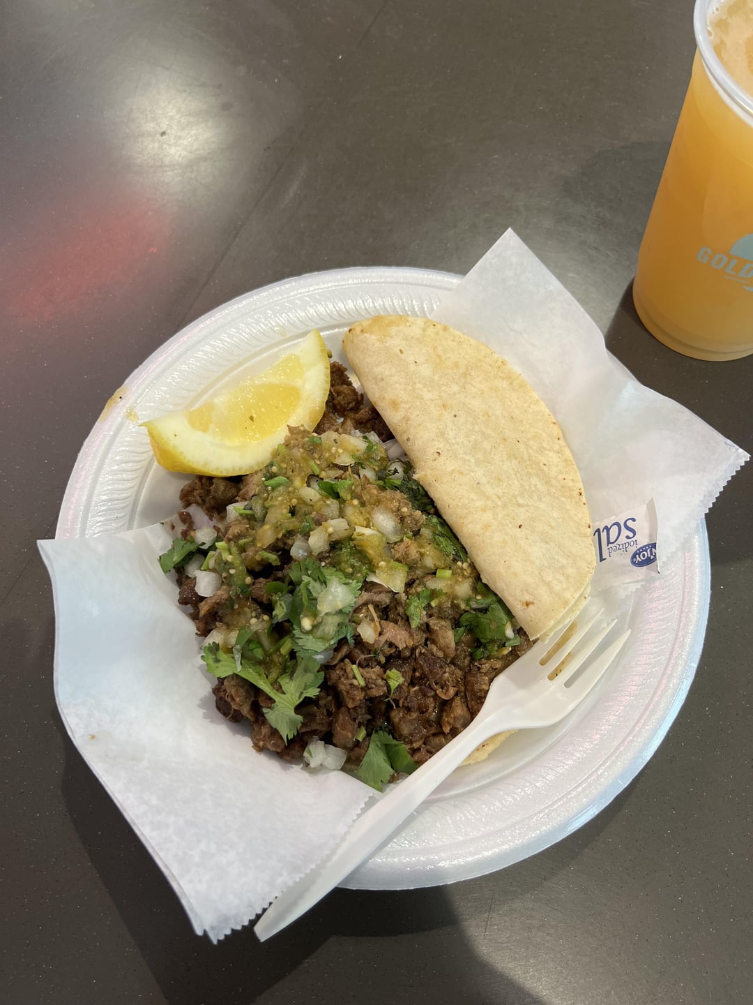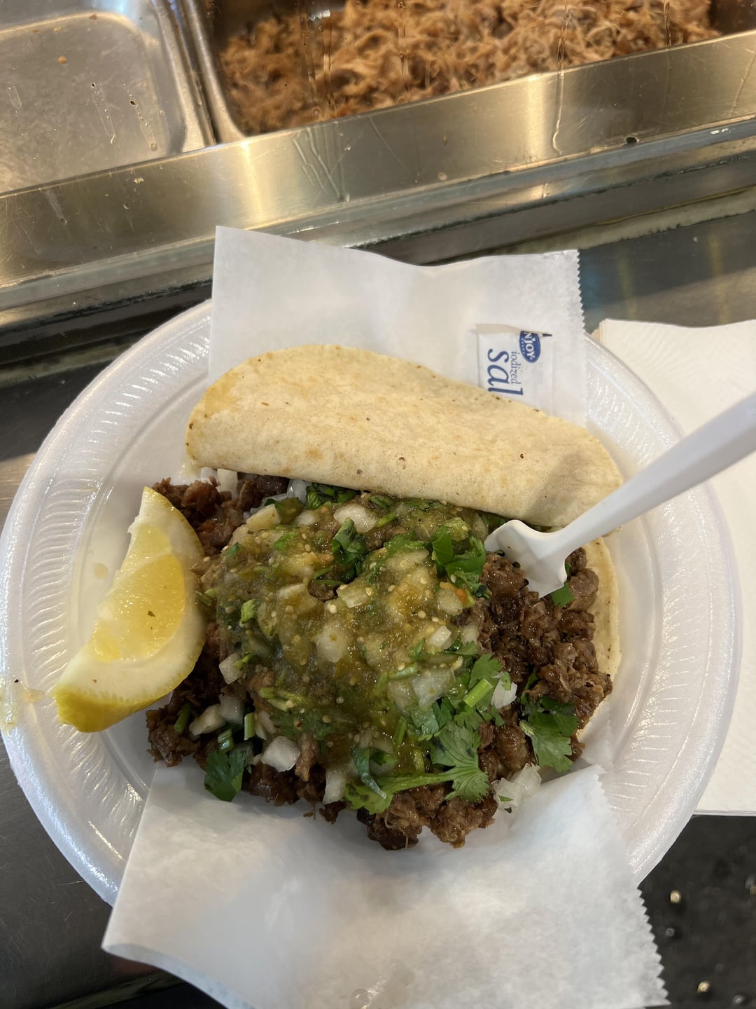 Tacos a tumbras if i remember correctly. They used to be $3 for a full size corn tortilla and 3 heaping scoops of meat with extra tortillas on the side equating to about 4 tacos. It’s still relatively cheap but those were the days when i could take the redline to pershing square and have a good meal for less than $10.