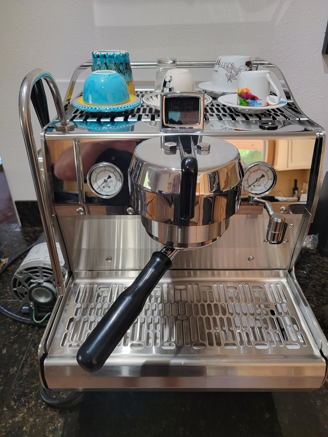 I am waiting for water filtration which should have been here by now. Could still be a month out who knows. The grinder is at least a month out. I do haha very the distribution tool. Woo-hoo. A st Anthony’s. More pics to follow. Cudos to those who recognize the machine. It shouldn’t be hard.