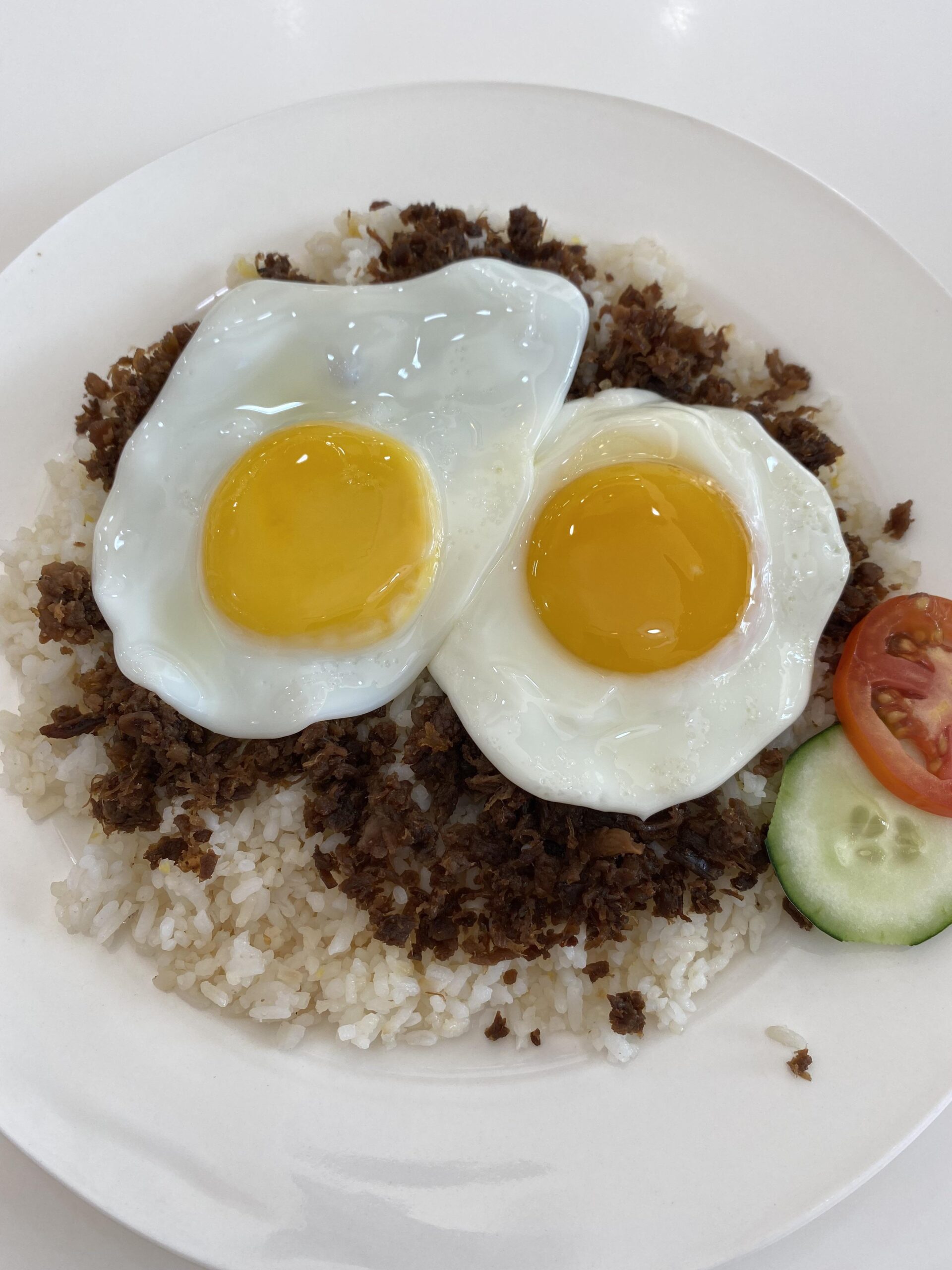 The humble ‘tapsilog’ – tapa (fried dried beef, in this case, shredded); sinangag (fried rice); itlog (egg).