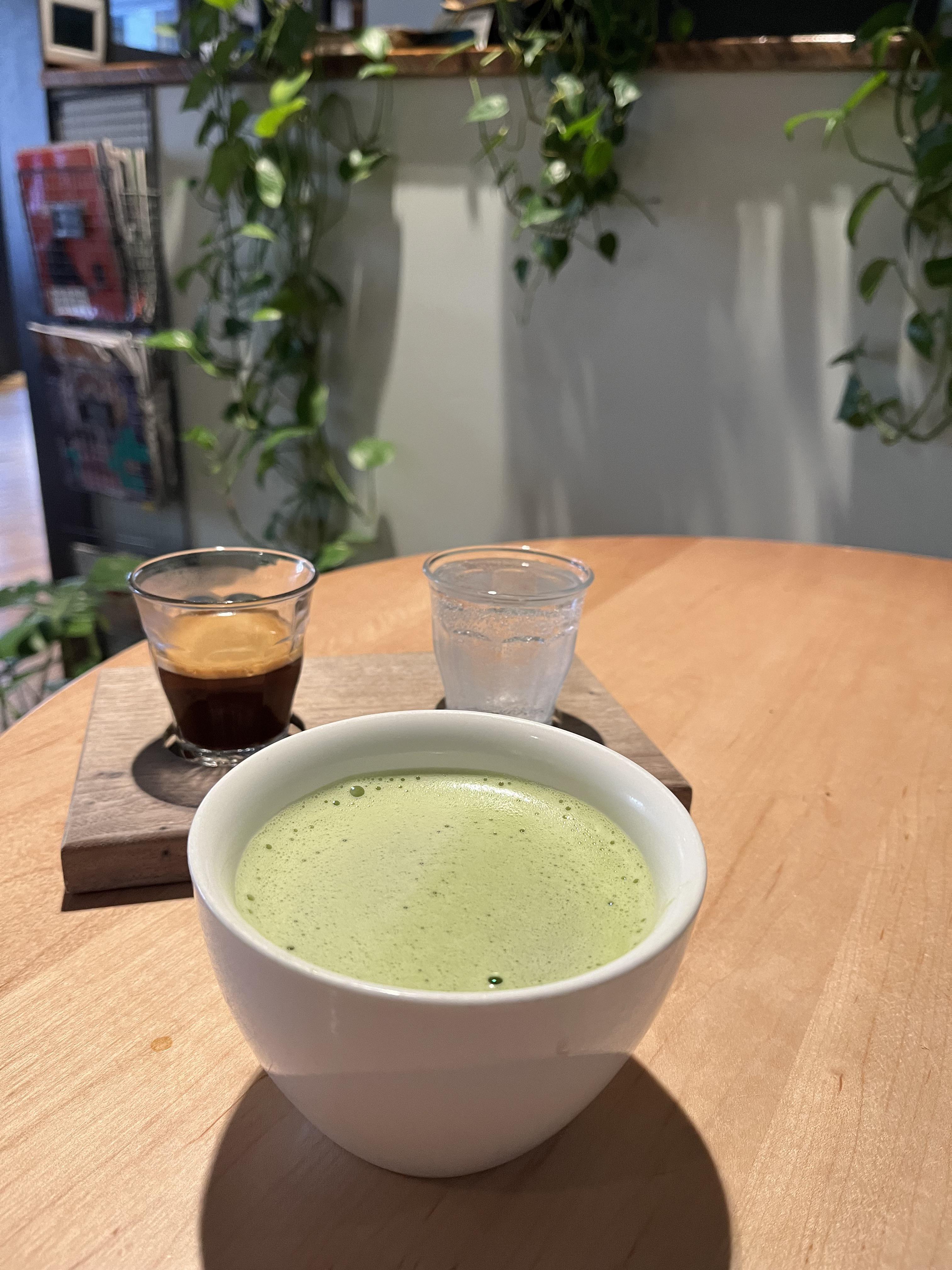So Matcha latte, espresso, and sparkling water?