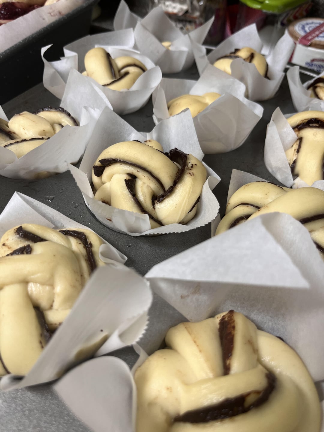 Used https://sourdoughbrandon.com/sourdough-babka-with-any-jam/ recipe for the dough and added a chocolate filling. They came out so so cute!!