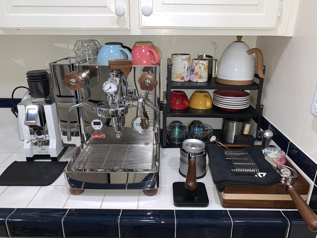 fpw138 4 years ago Lelit Bianca V2Eureka Mignon Specialita GrinderEureka Mignon Single-Dose Hopper and Silicone BellowsAcaia Lunar Scale in BlackWooden Espresso Knock Box Tamp StationTough Coffee – Portafilter holder standBarista Space milk pitchersFellow Eddy Steaming PitcherAirscape coffee storage canisterBrewista electric gooseneck kettleEspresso thermometerAsso Coffee Jack LevelerCafelat Flat Tamping MatLoveramics Egg style cup & saucerKruve Propel espresso glassesKruve Imagine Milk glassesRSVP stanless steel coffee scoopDIY WDT tool