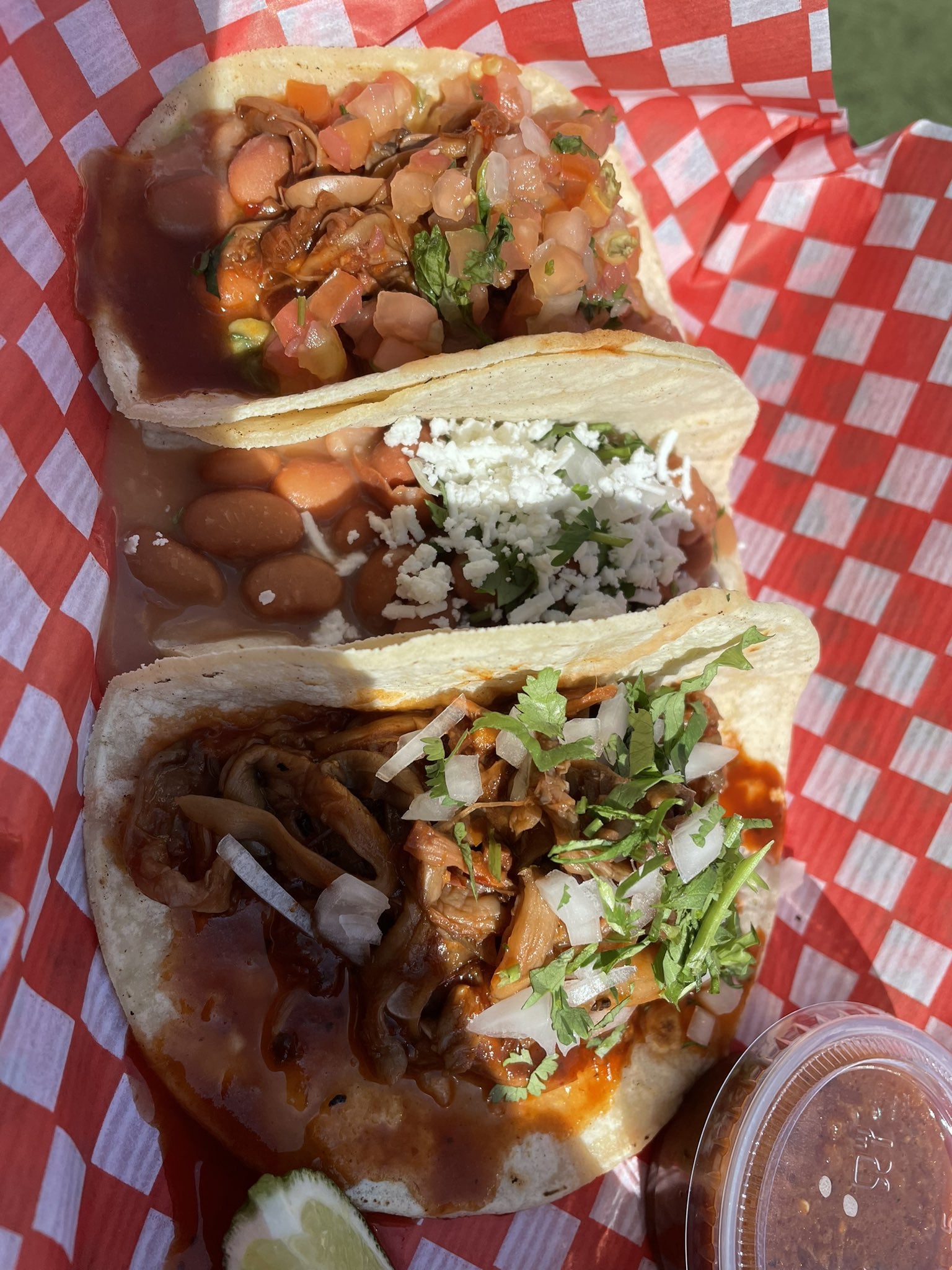 Meatless taco trio: the ‘pulled mushroom’ texture was fantastic