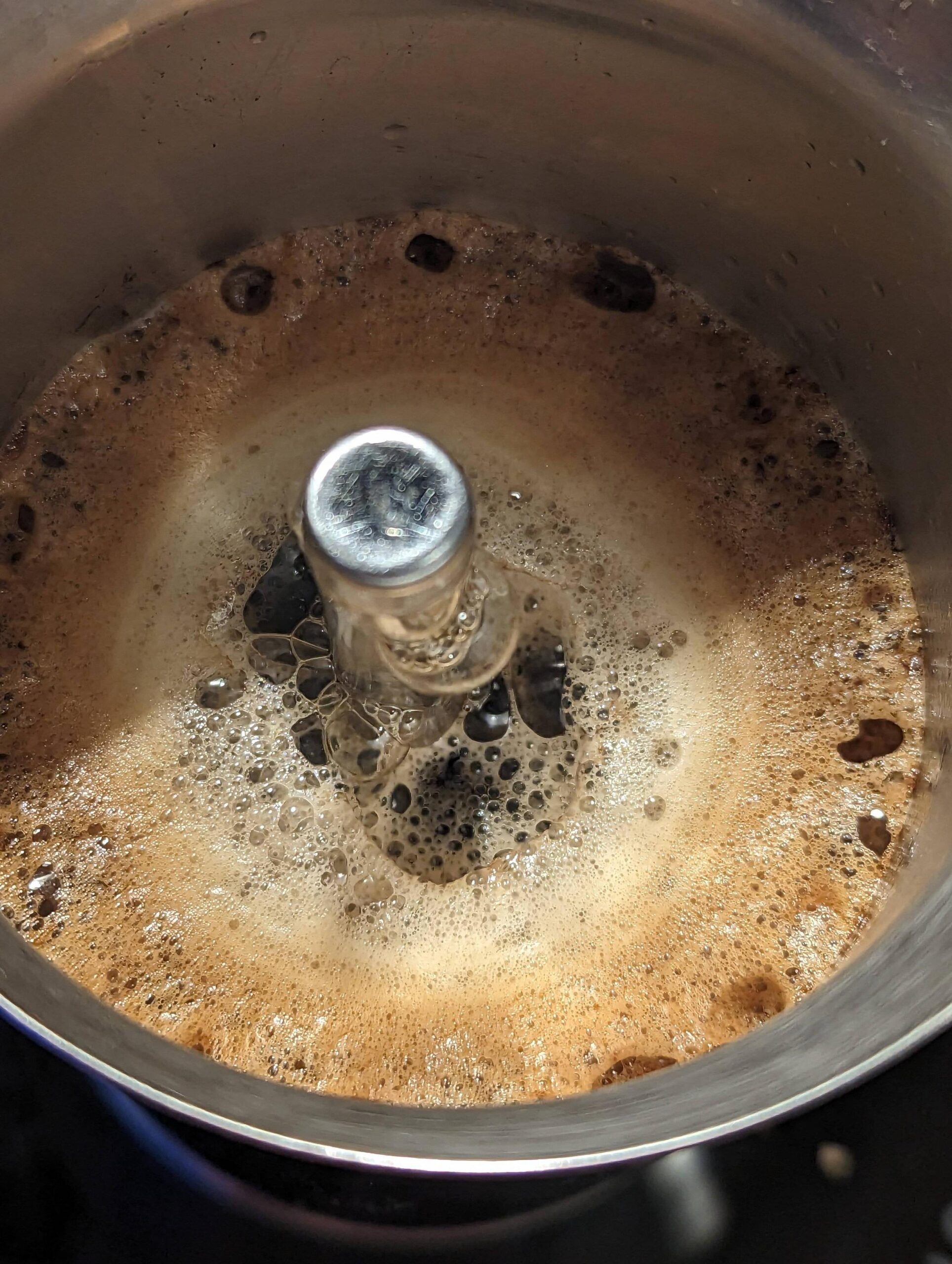 If the spout pouring suddently stops halfway then picks up again, that means the heat is too high and/or you’re playing with the heat. No more than medium-low flame with gas, or medium heat with electric stovetop. And leave it alone.
