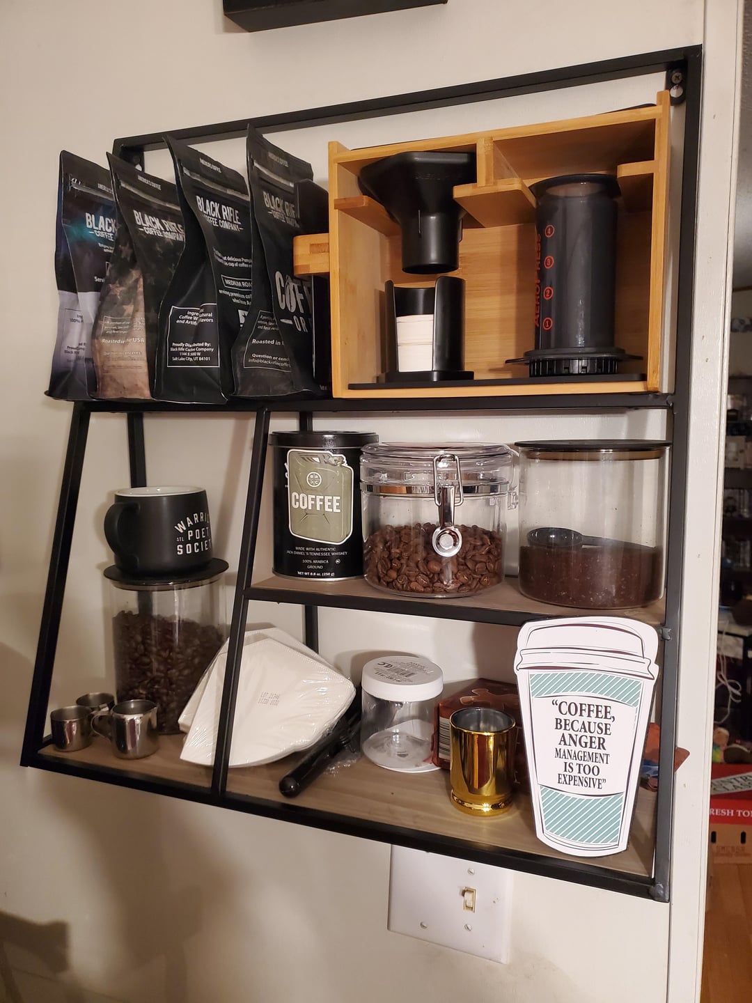 My home set up, kind of cluttered though…by Ace_-of-_Spades6 2 Comments caffeinetherapy 4 years ago I like this a lot! Don’t see many wall-mounted stations. Each piece looks like it belongs there. ckybam69 4 years ago i like the hanging aspect. May I ask where the other half of your aeropress goes?Write A CommentYou must be logged in to post a comment.