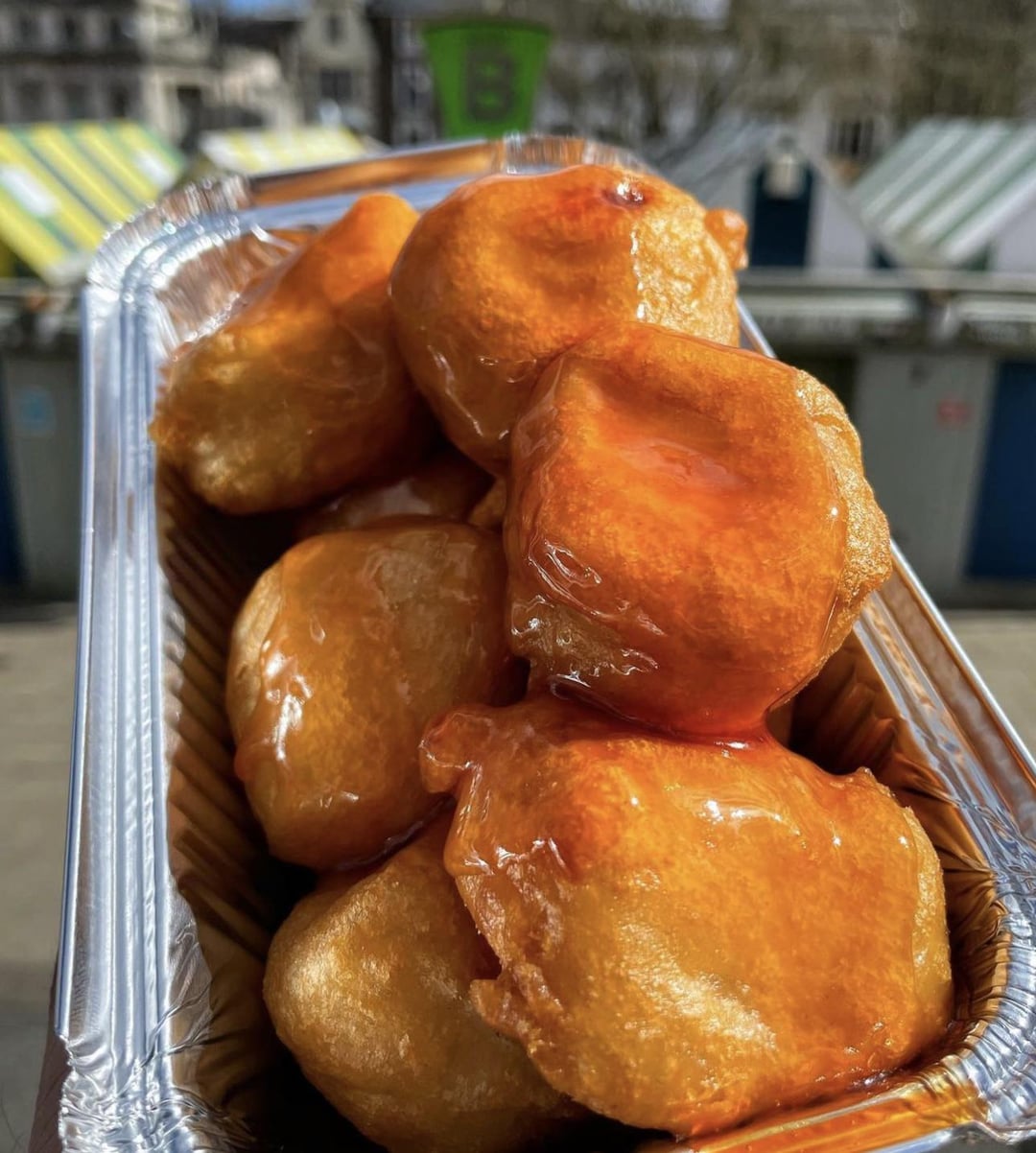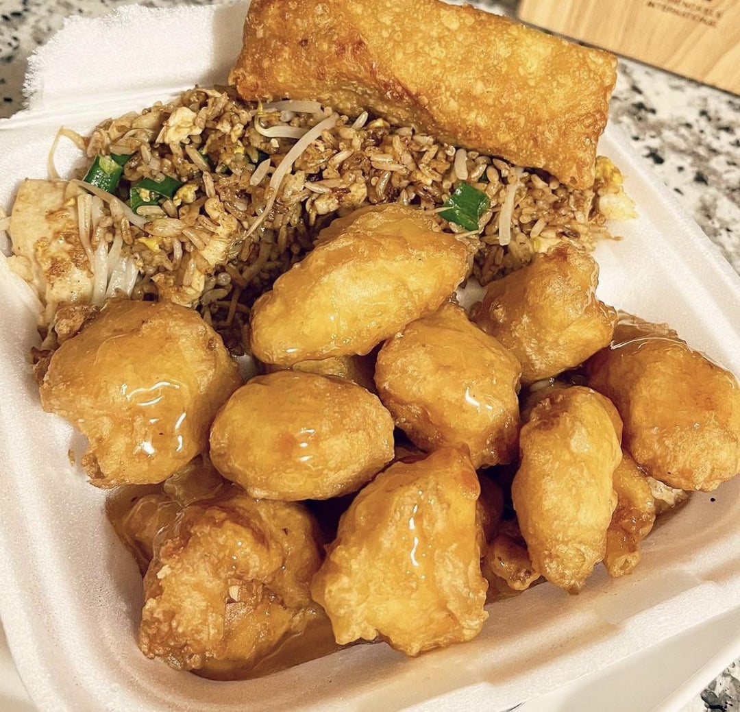24. Paul’s kitchen has this exact sweet and sour chicken. Get the sauce on the side, it’s the dough fried chicken and the bright red sauce that’s common on the east coast.