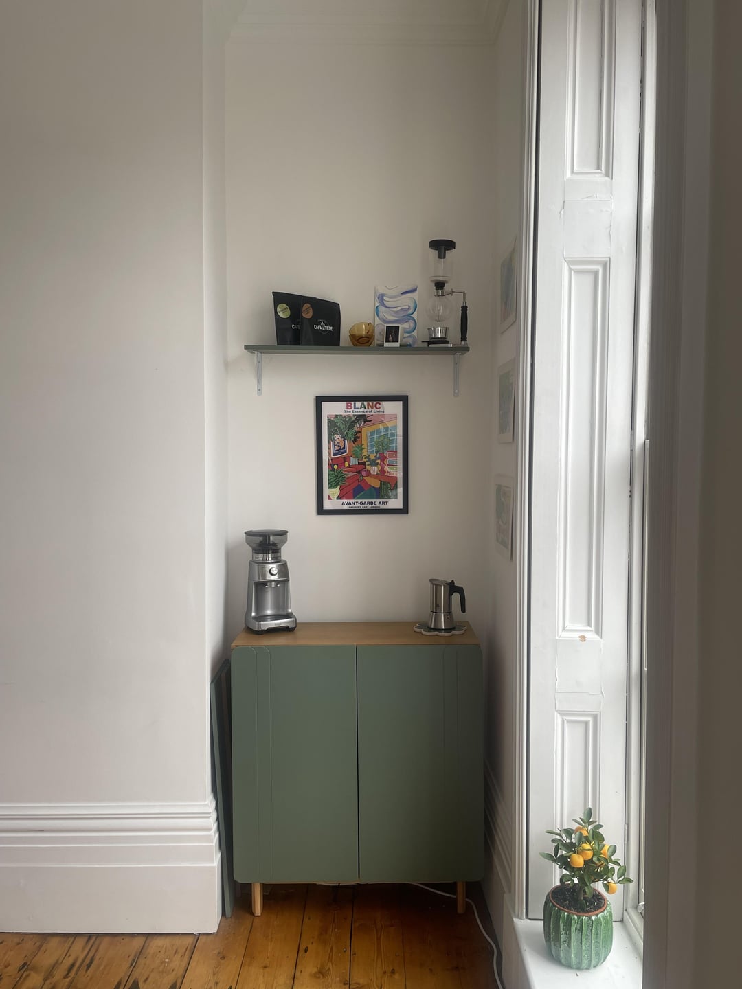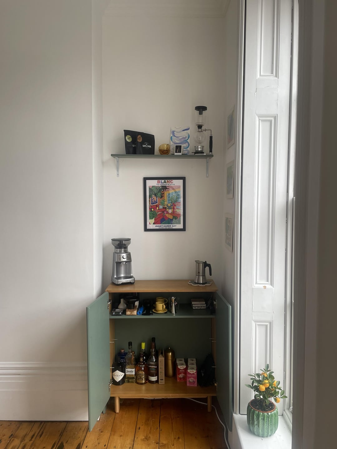 Been in this flat for a little over 6 months, and I finally have my coffee/bar station set up!