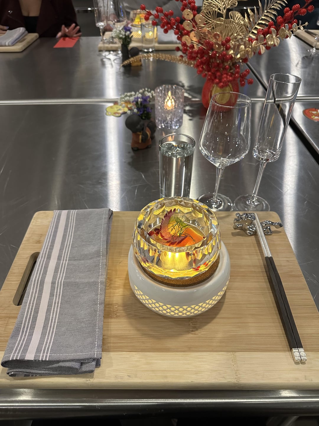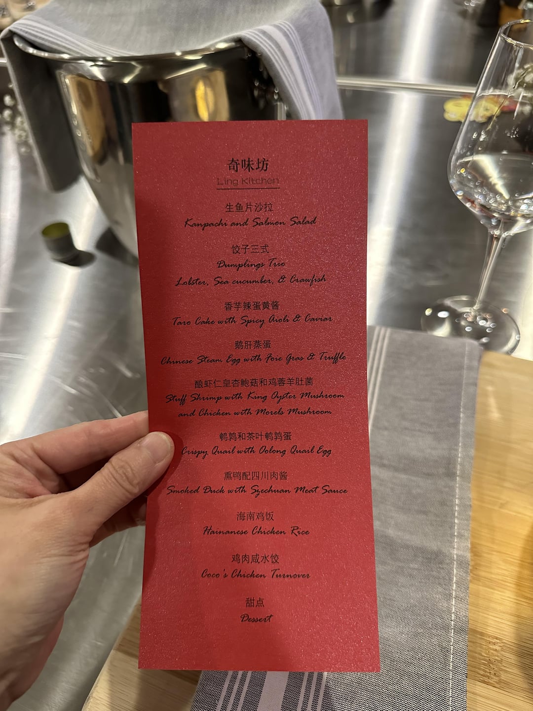 There were 16 guests yesterday. 10 courses. See picture for menu. I’d say the dishes were curated beautifully. I love the presentations and the timing of the course. Friendly vibe and very comfortable. Few courses were lacking imo. Steamed egg with truffle and foie gras- I could not taste the truffle. Hainanese chicken rice- the chicken was a bit dry and the ginger chili sauce could be stronger. I never tried Qi but my friend said it wasn’t any way better than Qi. I left full at least. My favorite was the taro cake and the stuffed shrimp in king oyster mushroom and chicken in morel mushroom. I love that Chef Ling included duck tongue in one of the courses. It can be intimidating for those who haven’t tried but it is actually a common Chinese dish.