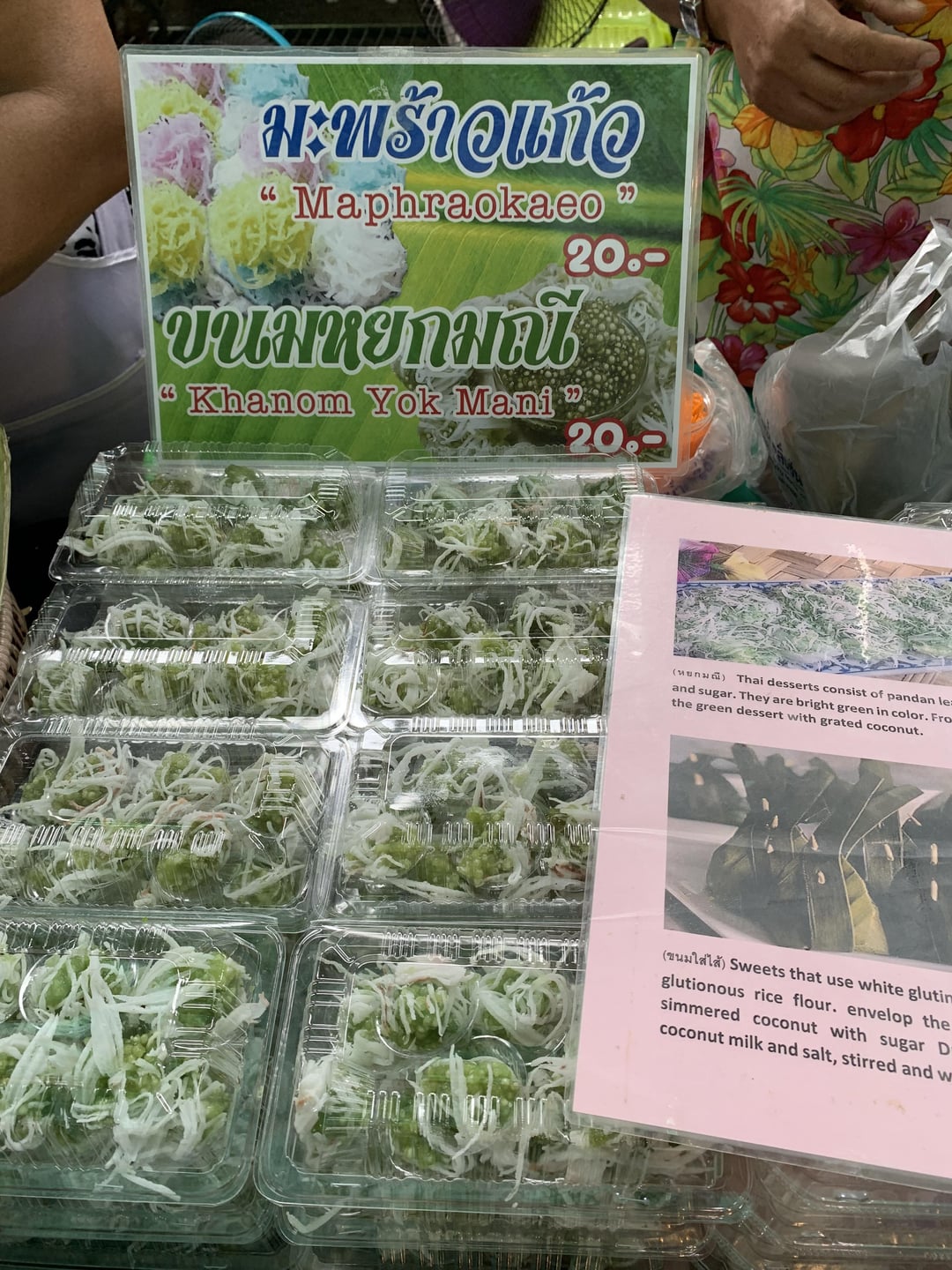 A couple of traditional Thai desserts at the Taling Chan Floating Market in Bangkok, Thailand